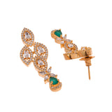Opulent Green and White CZ Adorned Teardrop Gold Toned Brass Jewellery Set