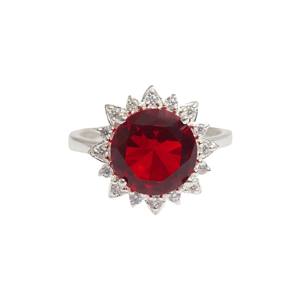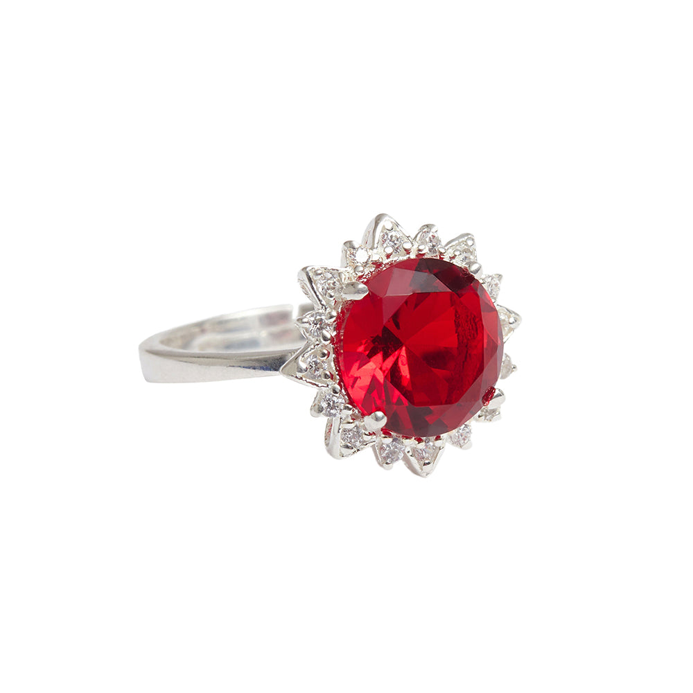 925 Sterling Silver Opulent Looking Red with Studded CZ Ring