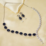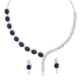 Oval Cut Blue CZ Silver Plated Brass Jewellery Set