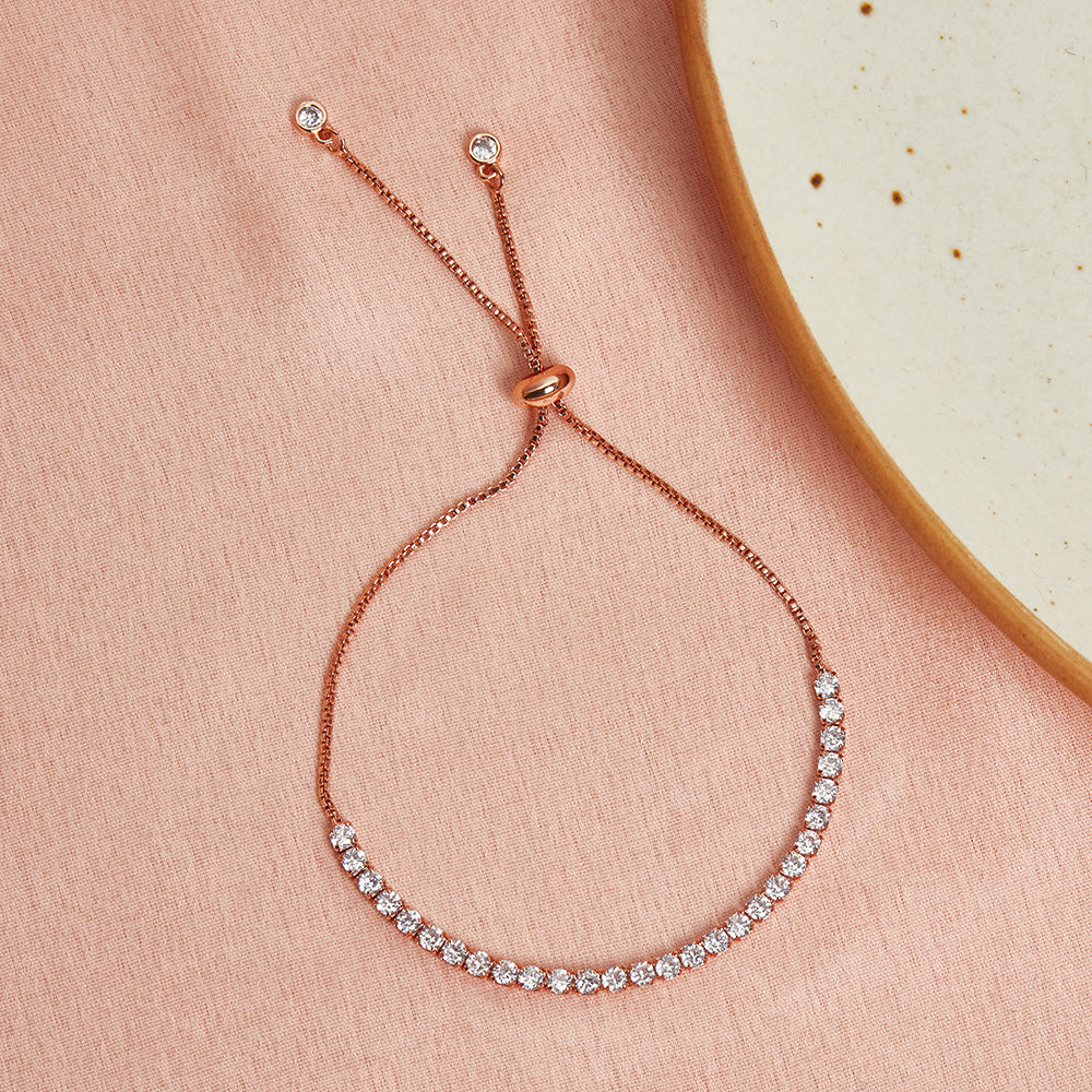 Oval Cut CZ Adorned Chain Style Brass Rose Gold Plated Bracelet
