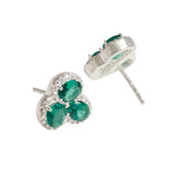 Oval Cut Emeralds Embellished Floral Motif 925 Sterling Silver Box Set