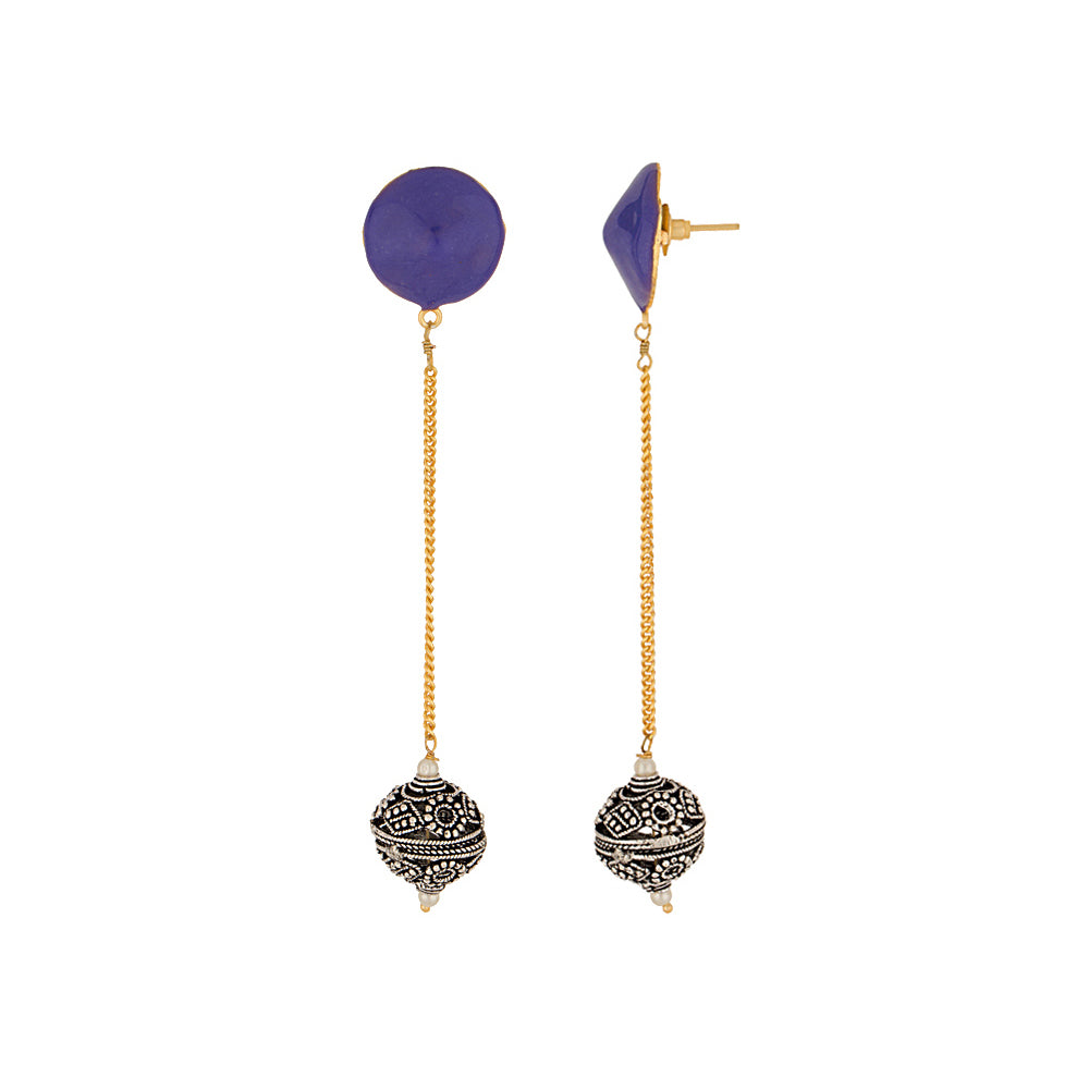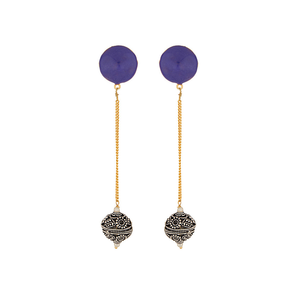 A perfect definition of beauty and grace. These uniquely styled dangler earrings featuring oxidised ball drops will make your look chic and graceful. The brilliant craftsmanship of these danglers ensures durability and longevity.