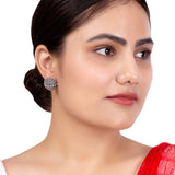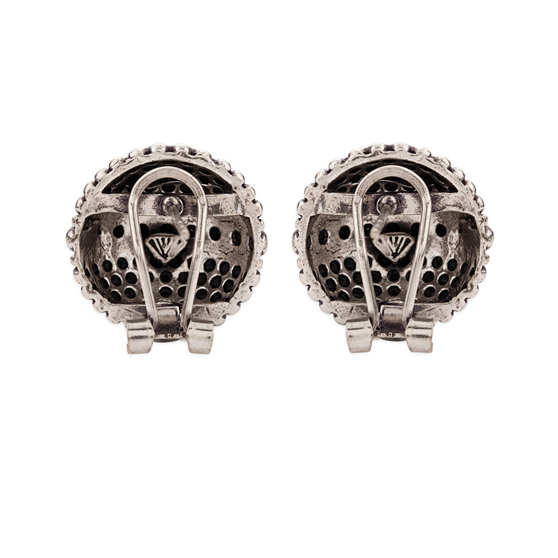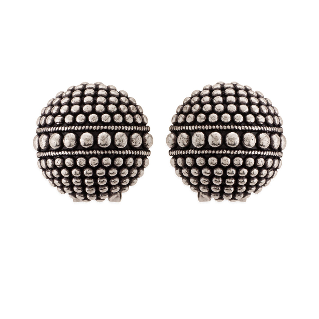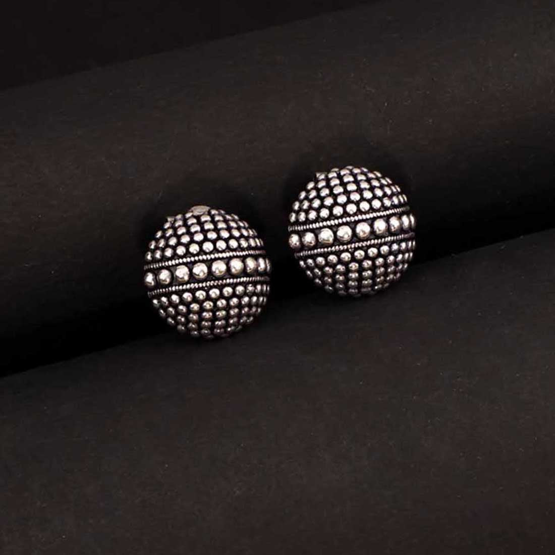 Rava Ball Tomb Motif Silver Oxidized Plated Earrings