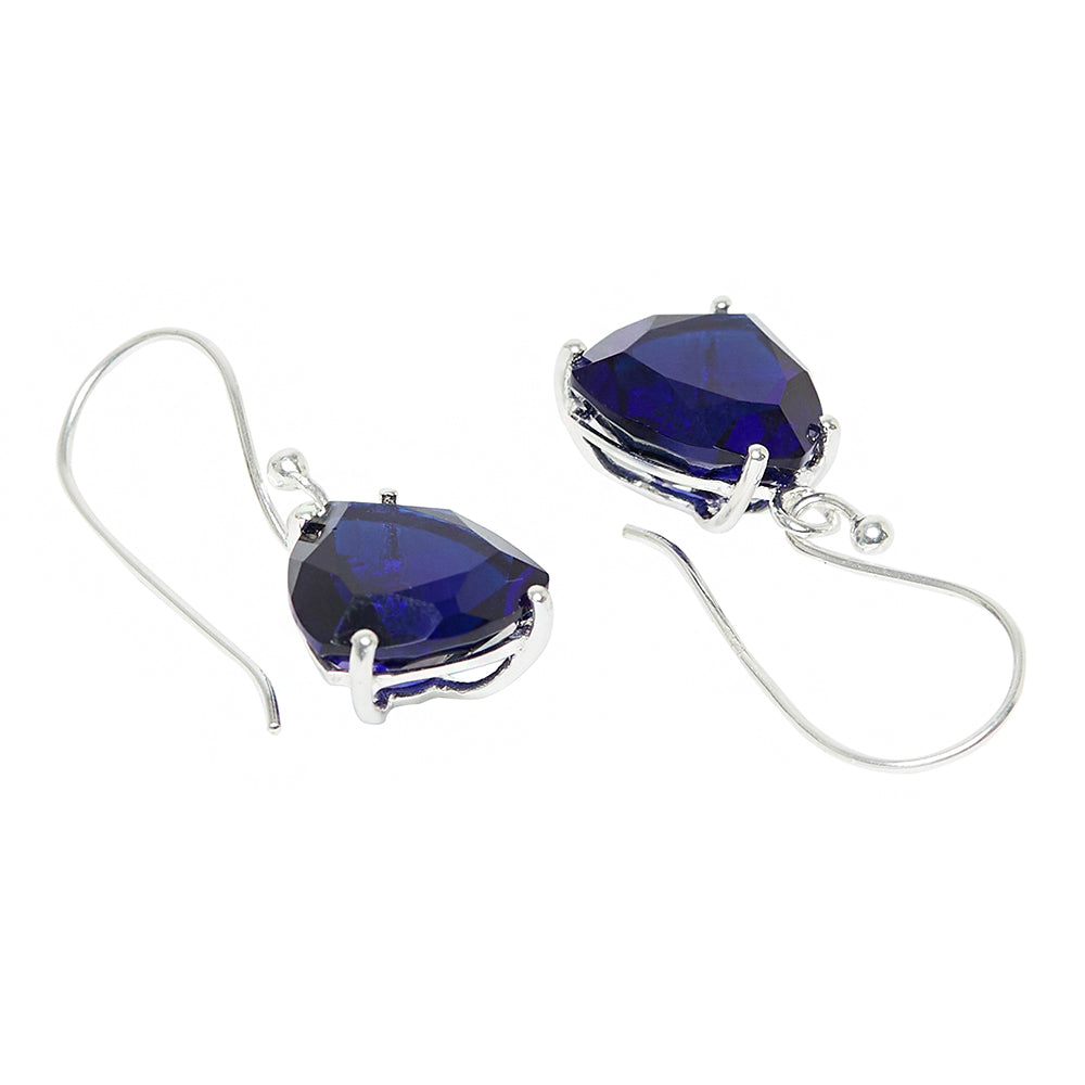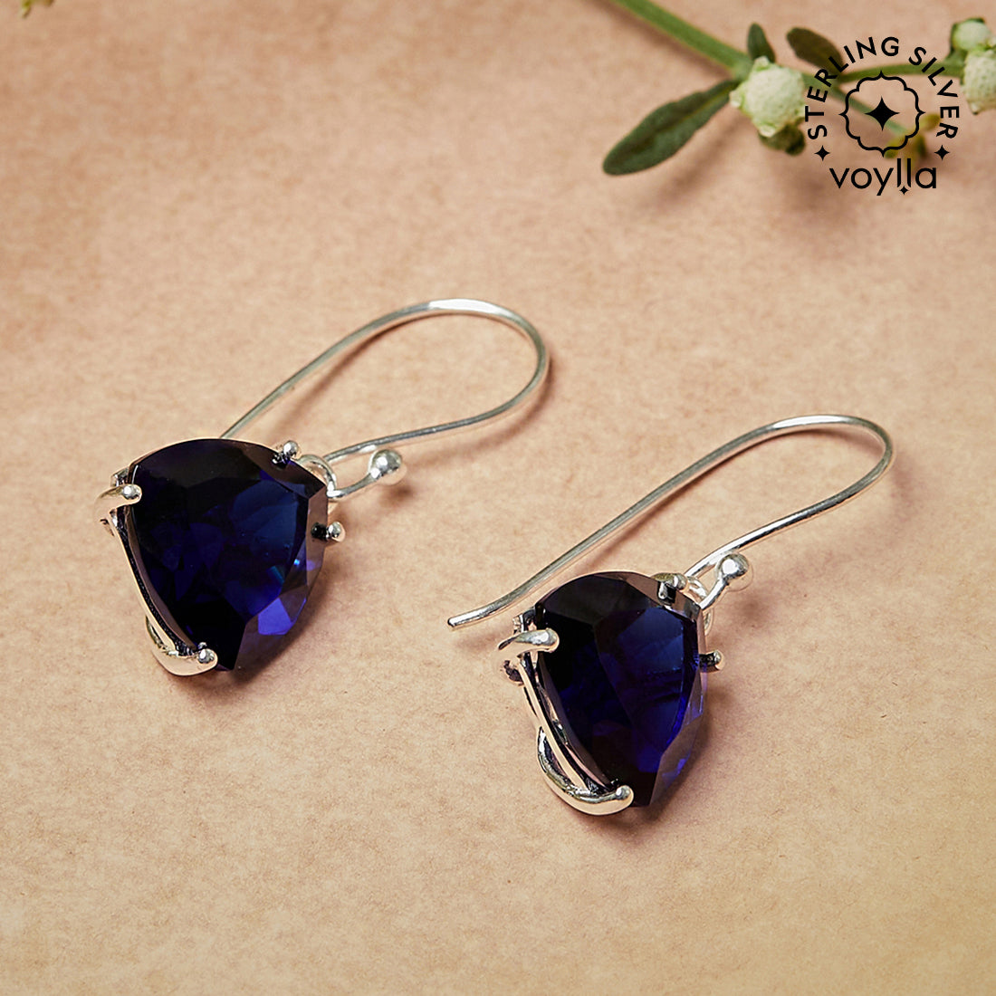 Enhance your style with the majestic charm of these beautifully designed sterling silver earrings studded with blue color stone. The earrings features unique designing that gives them a stunning look.