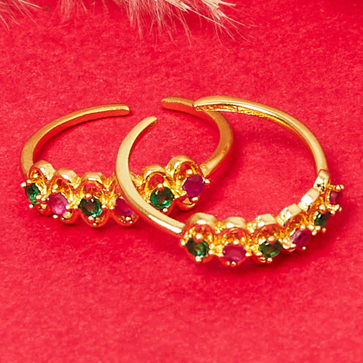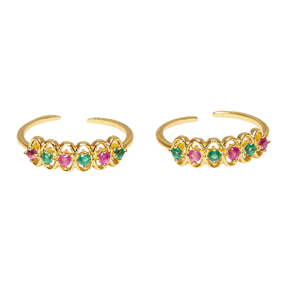 Pair of Toe Rings with Multi Colored Stones