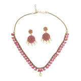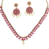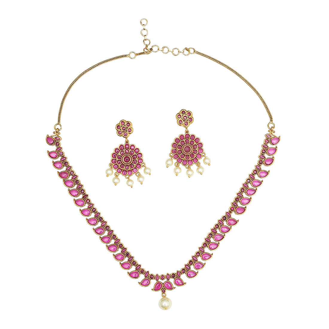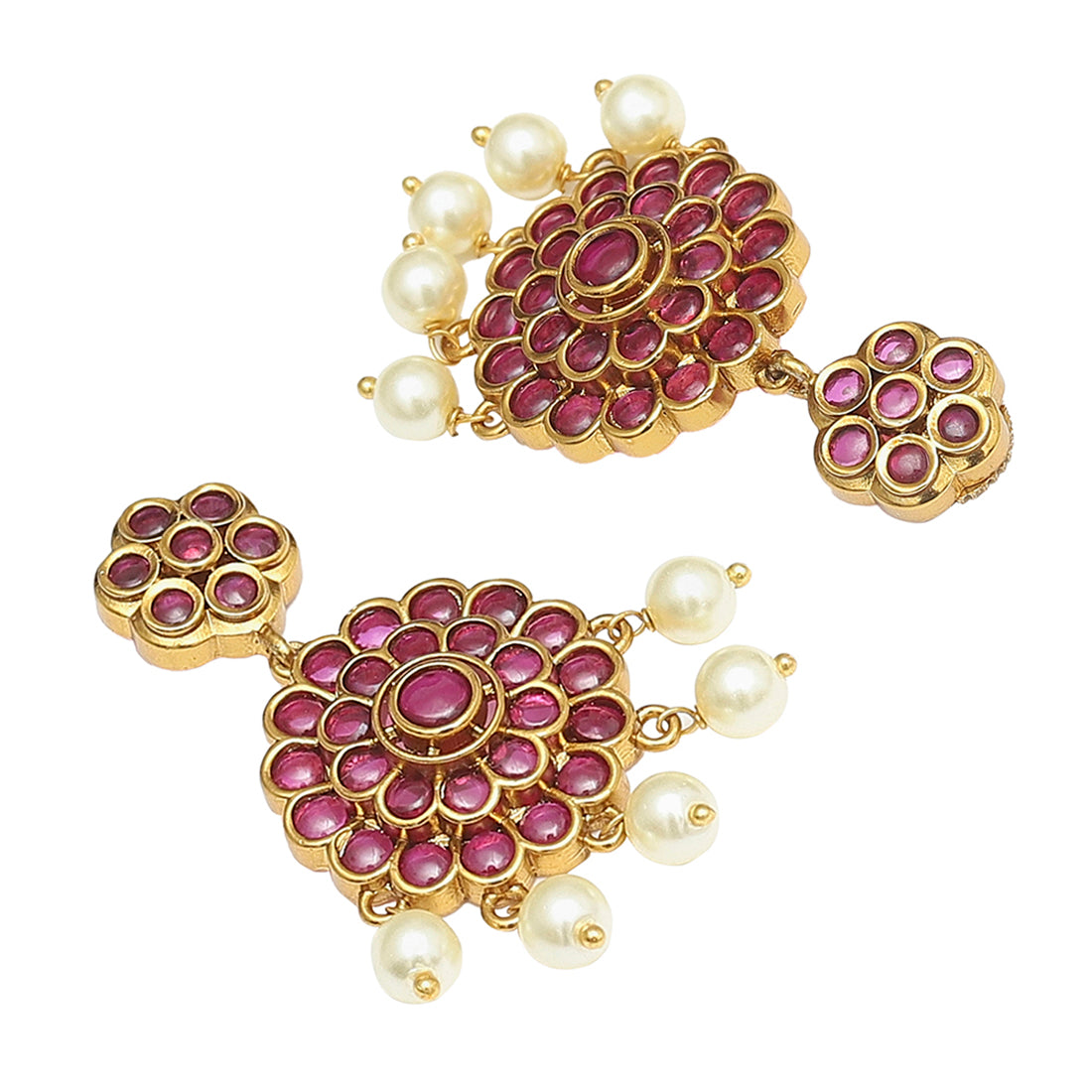 Paisley and Floral Motifs CZ and Faux Pearls Brass Gold Plated Jewellery Set