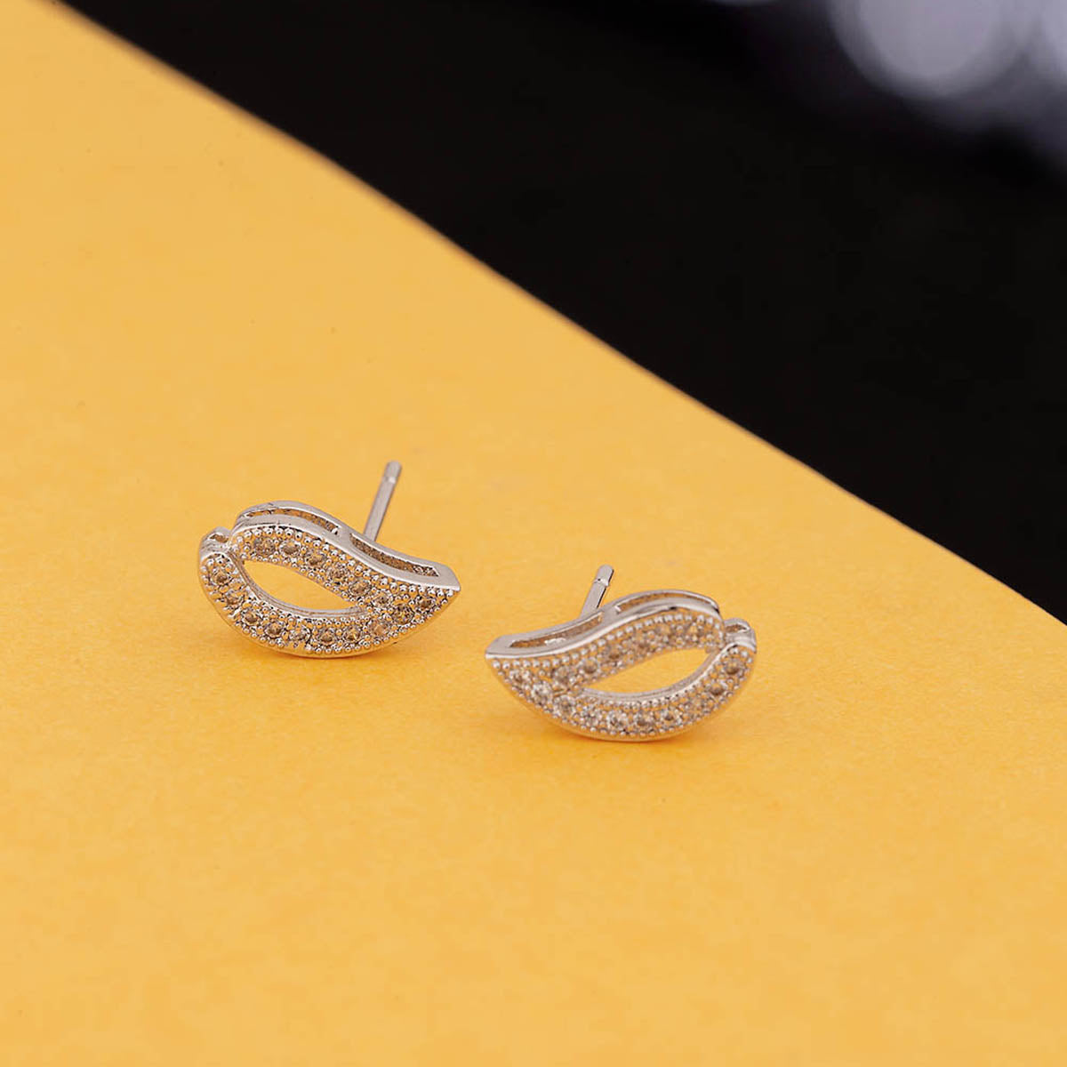 Paisley motif gemstones embellished earrings. Made from brass and silver plated. Good match for casual attire.