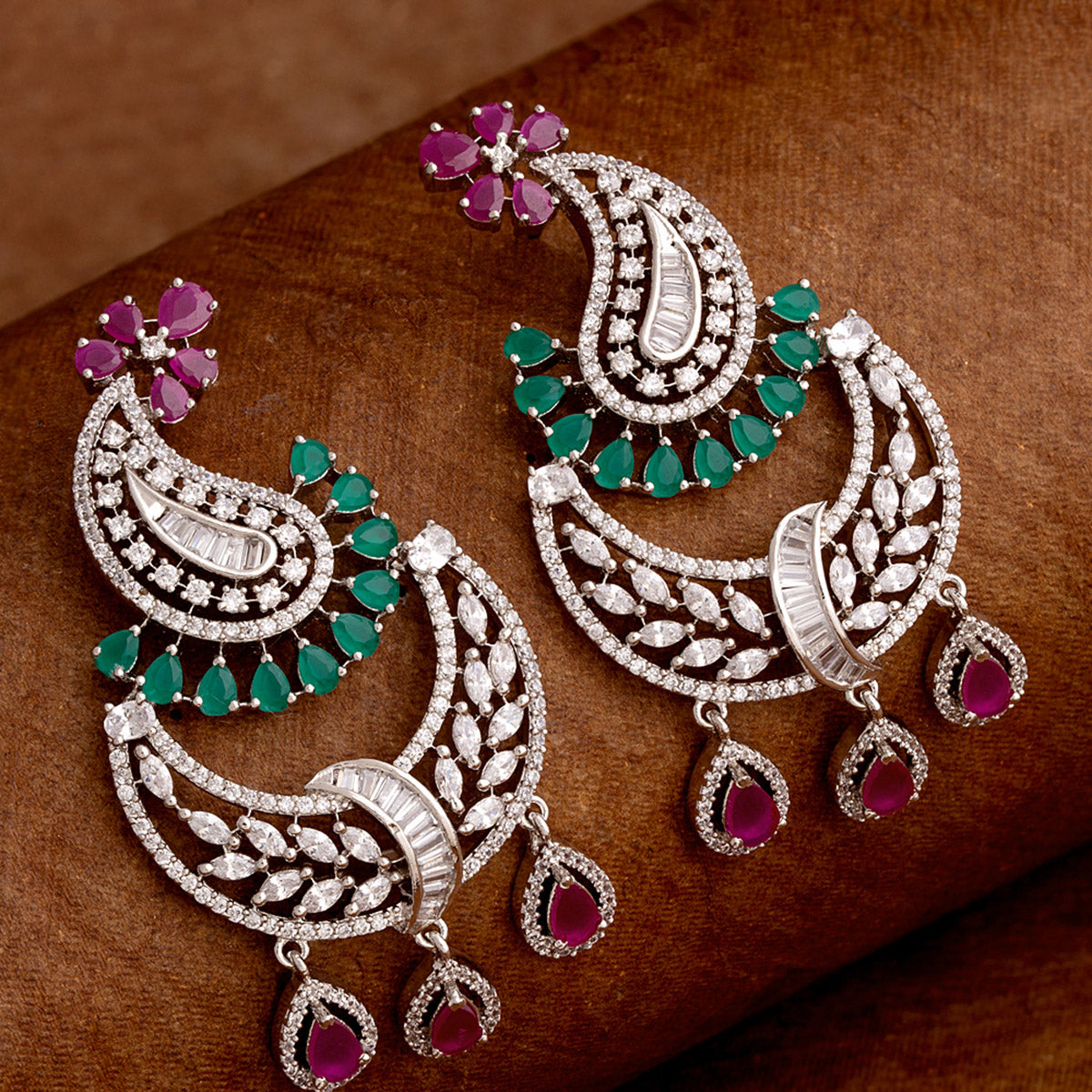 Paisley Motif CZ Gems Earrings