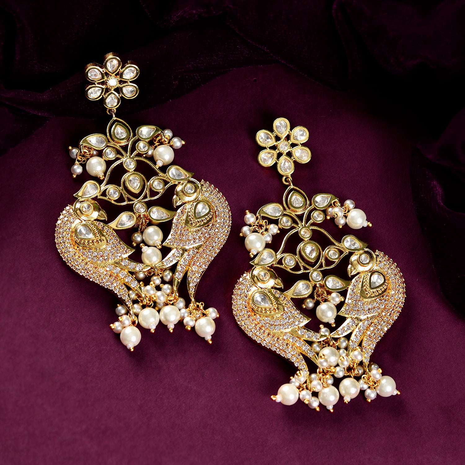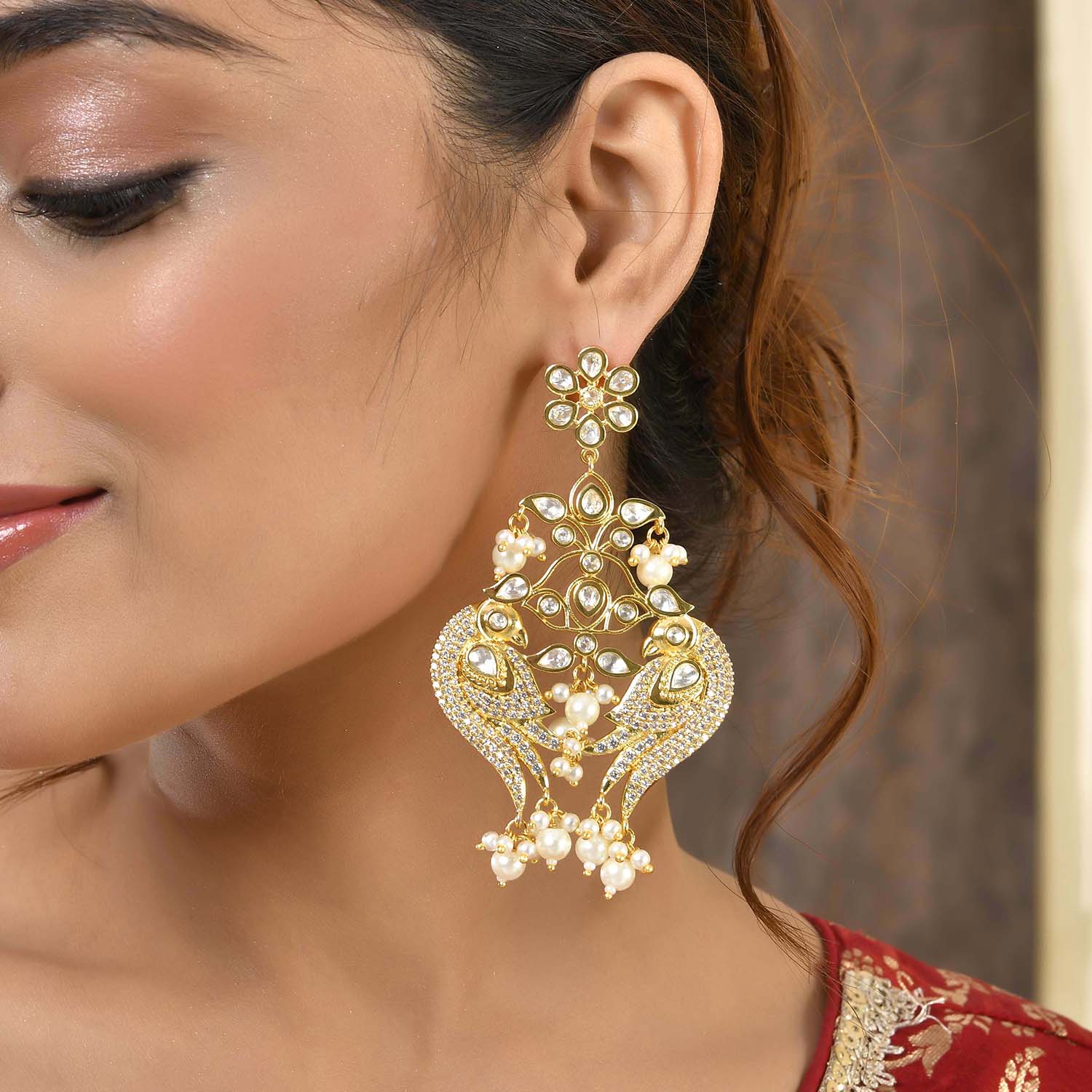Imagine wearing the Voylla Huma Statement Earrings, part of the Panchhi collection, that draw inspiration from natureÕs most majestic birds. Crafted from high-quality brass and adorned with stunning American Diamond Kundan stones and delicate pearl drops, these earrings are a true testament to timeless elegance. Their gold plating adds a touch of opulence, making them perfect for festive occasions, weddings, or even a special party. Styling them is a breeze; whether with traditional attire or a chic cocktail dress, theyÕre sure to make you stand out. And when it comes to gifting, these earrings are ideal for every woman in your lifeÑbe it your sister, girlfriend, wife, mother, or a beloved friend. Perfect for events like Diwali, Rakshabandhan, Christmas, New Year, or even ValentineÕs Day, these earrings are more than just accessoriesÑthey are a symbol of love and harmony. Celebrate lifeÕs special moments with these stunning pieces, and make every occasion a little more magical.