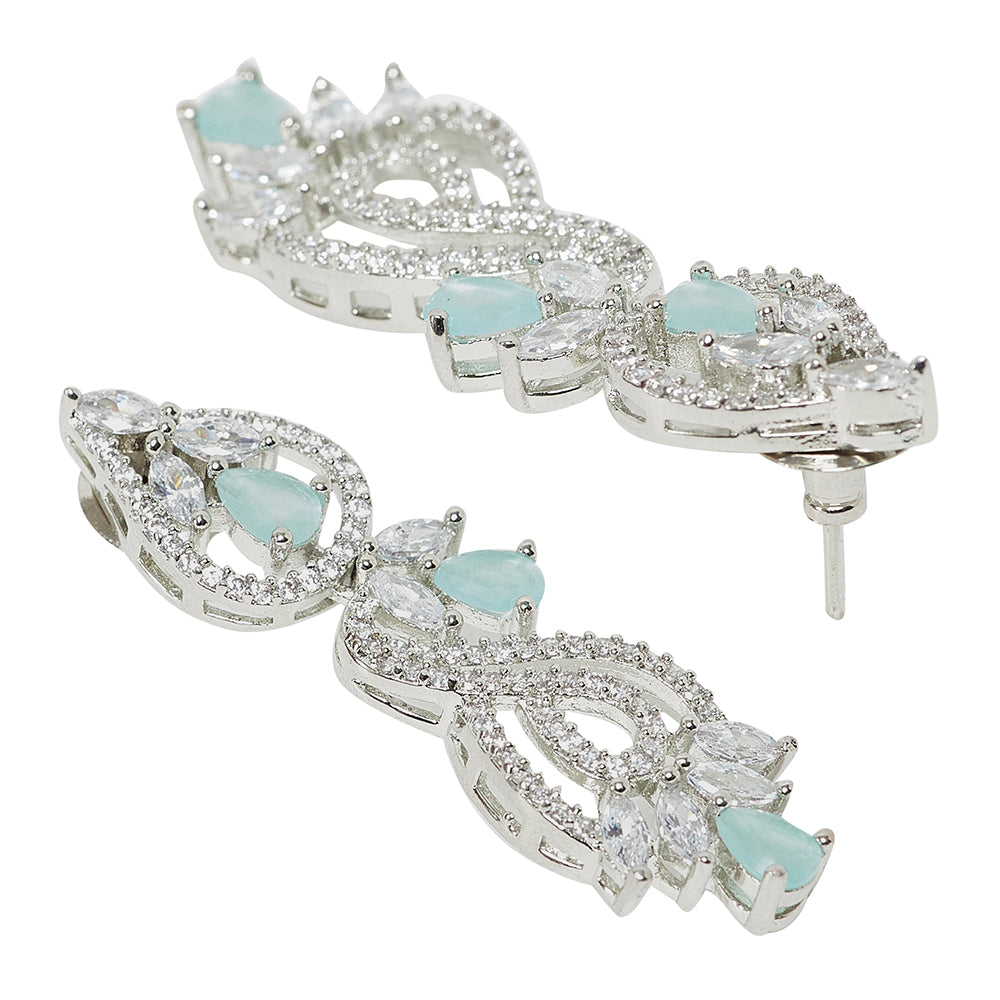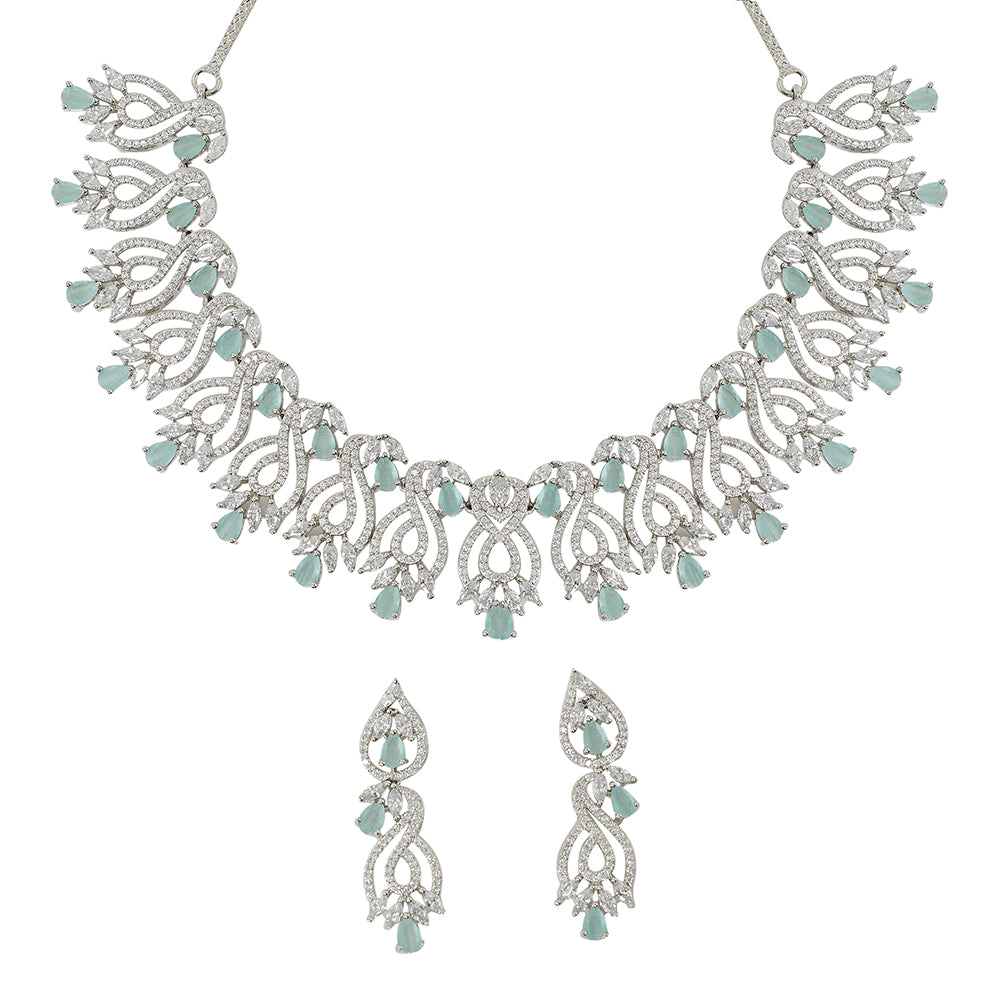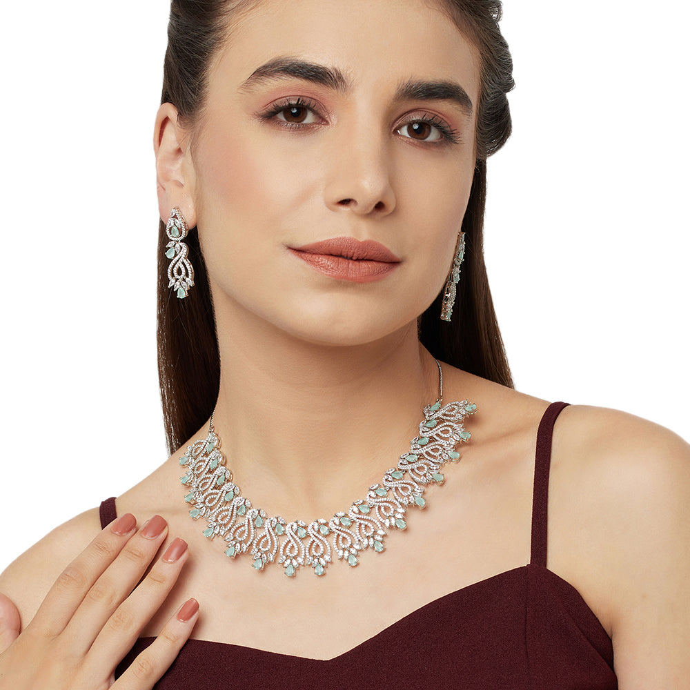 Sparkling Elegance Green and White CZ Brass Silver Plated Jewellery Set