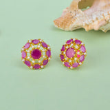 Pearl Beaded Pink Zirconia Gemstones Stud Earrings