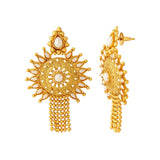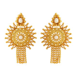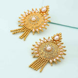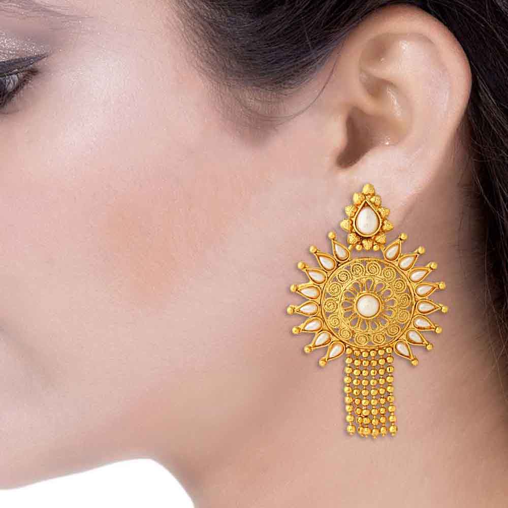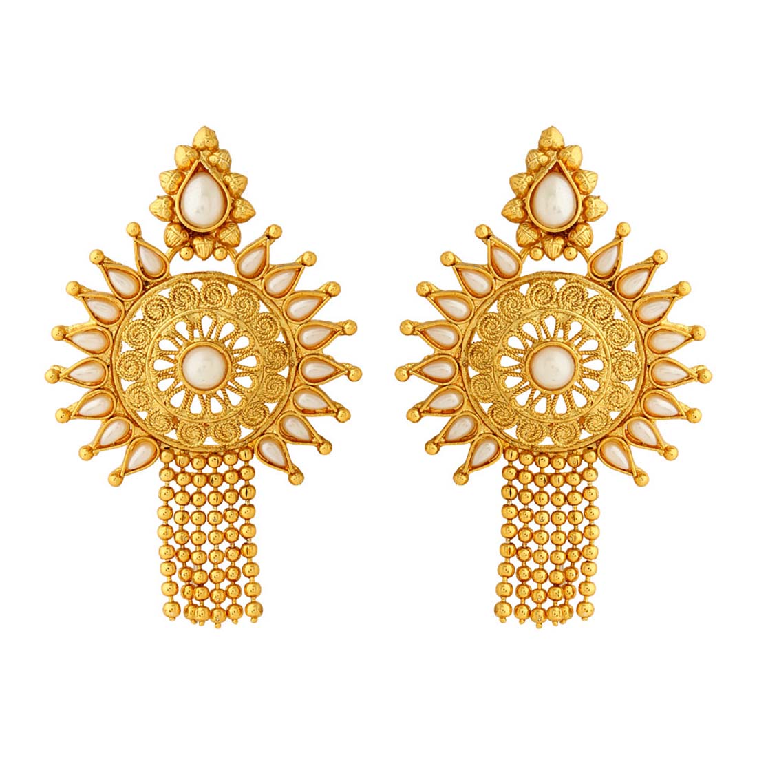 Get these ravishing pair of dangler earrings from Voylla fashion house. Immaculately set against gold plating that boost the style factor. Studded with pearl beads for a classy look. Add these to your jewelry box right away.