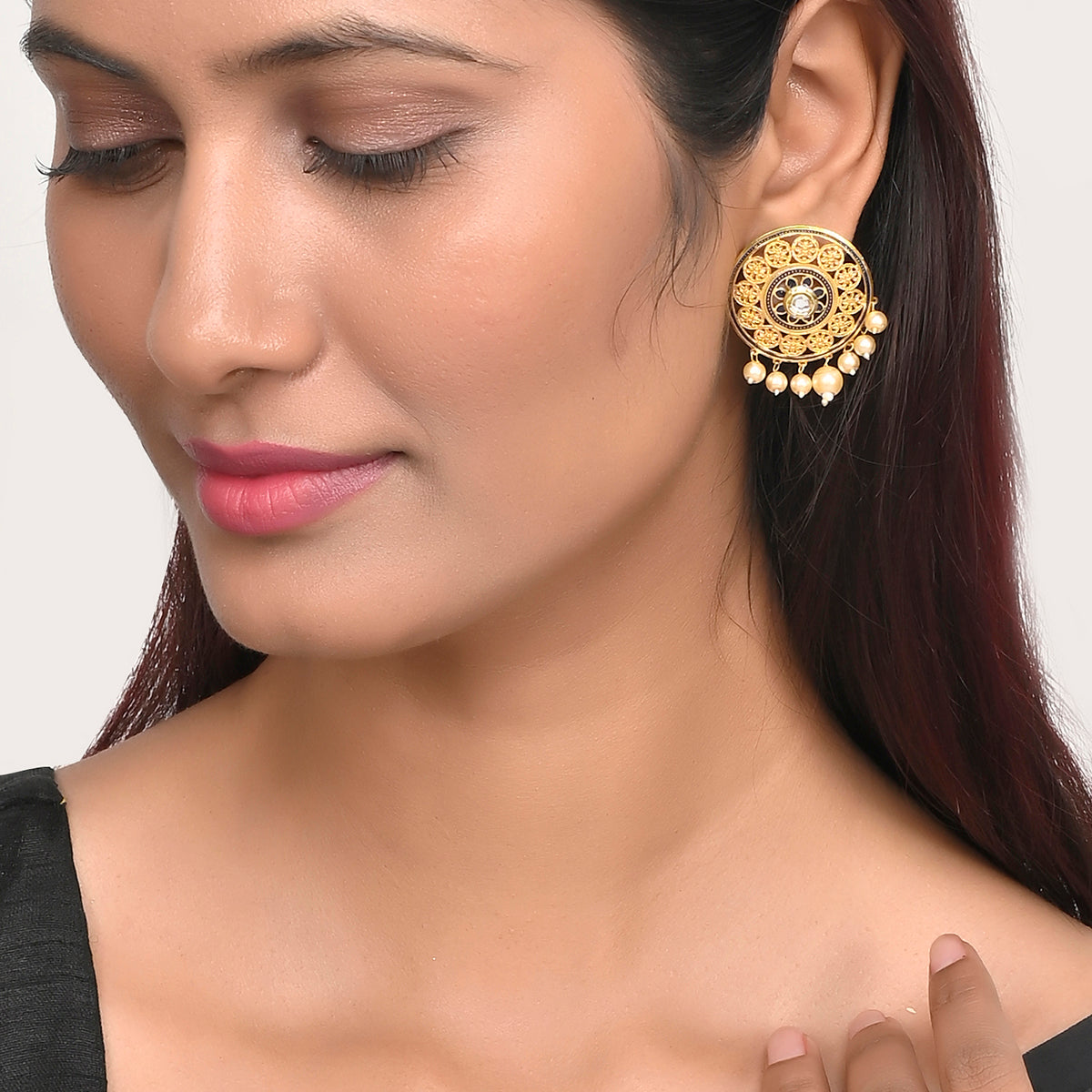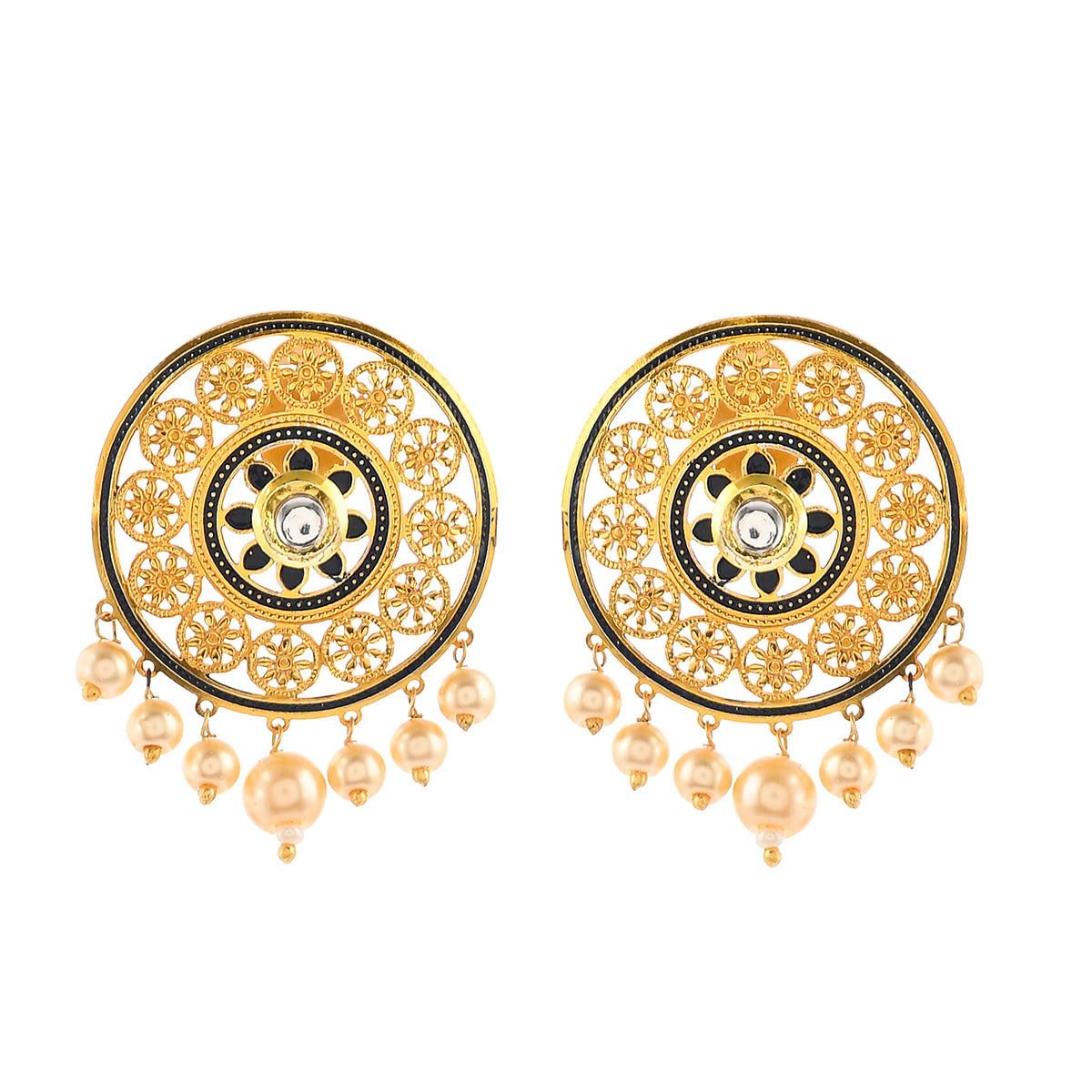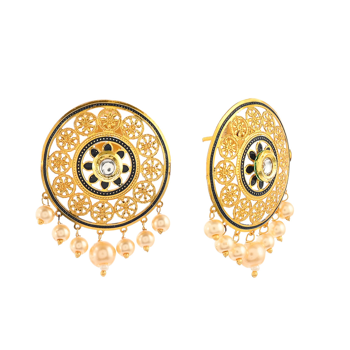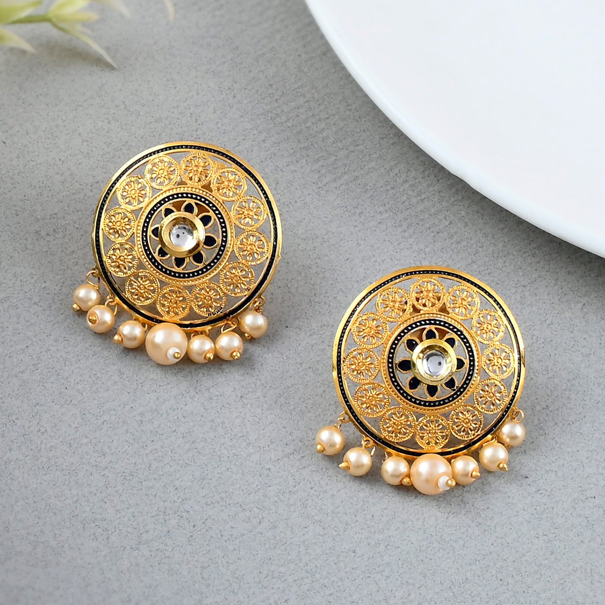Pearl Elegance Faux Pearls and Kundan Adorned Gold Plated Large Stud Earrings