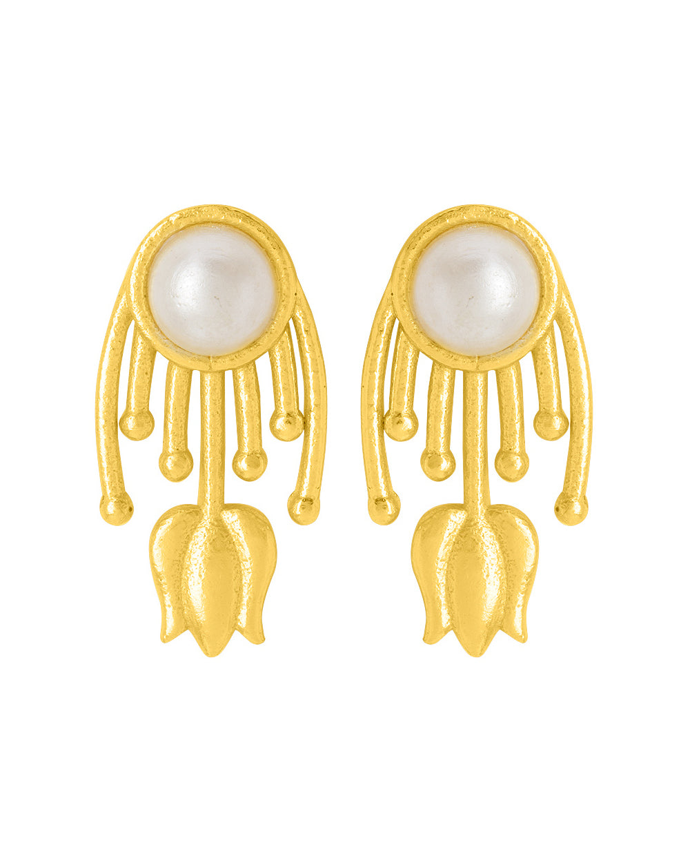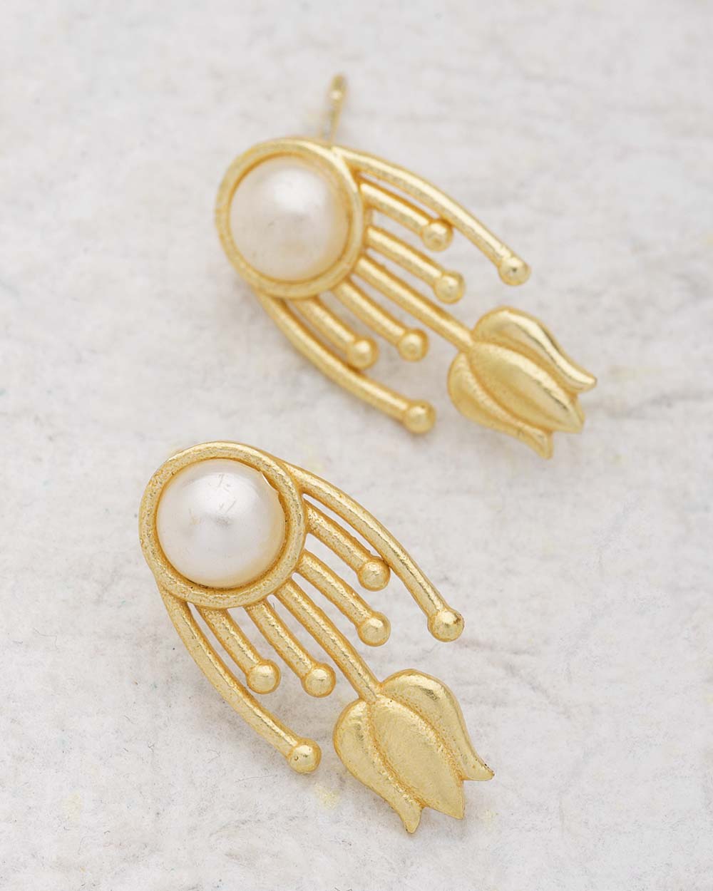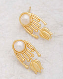 Pearl Studded Yellow Gold Studs For Women