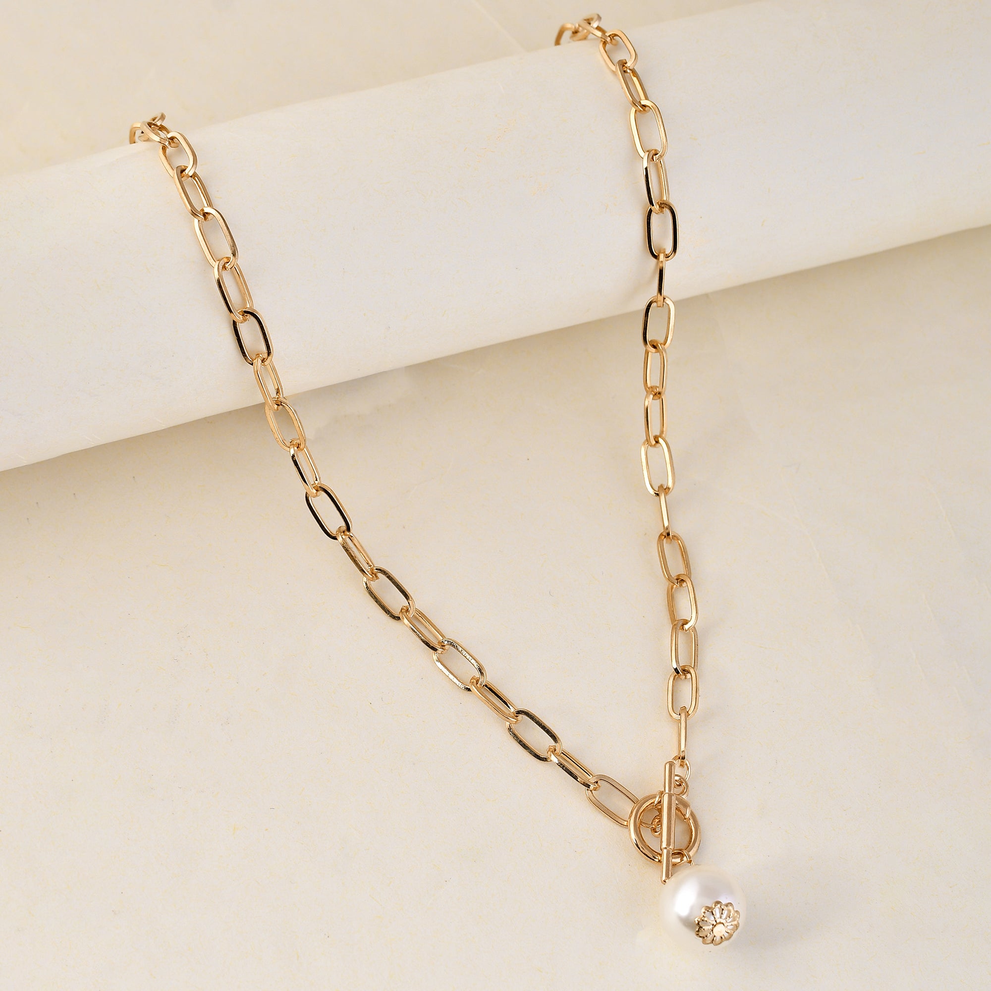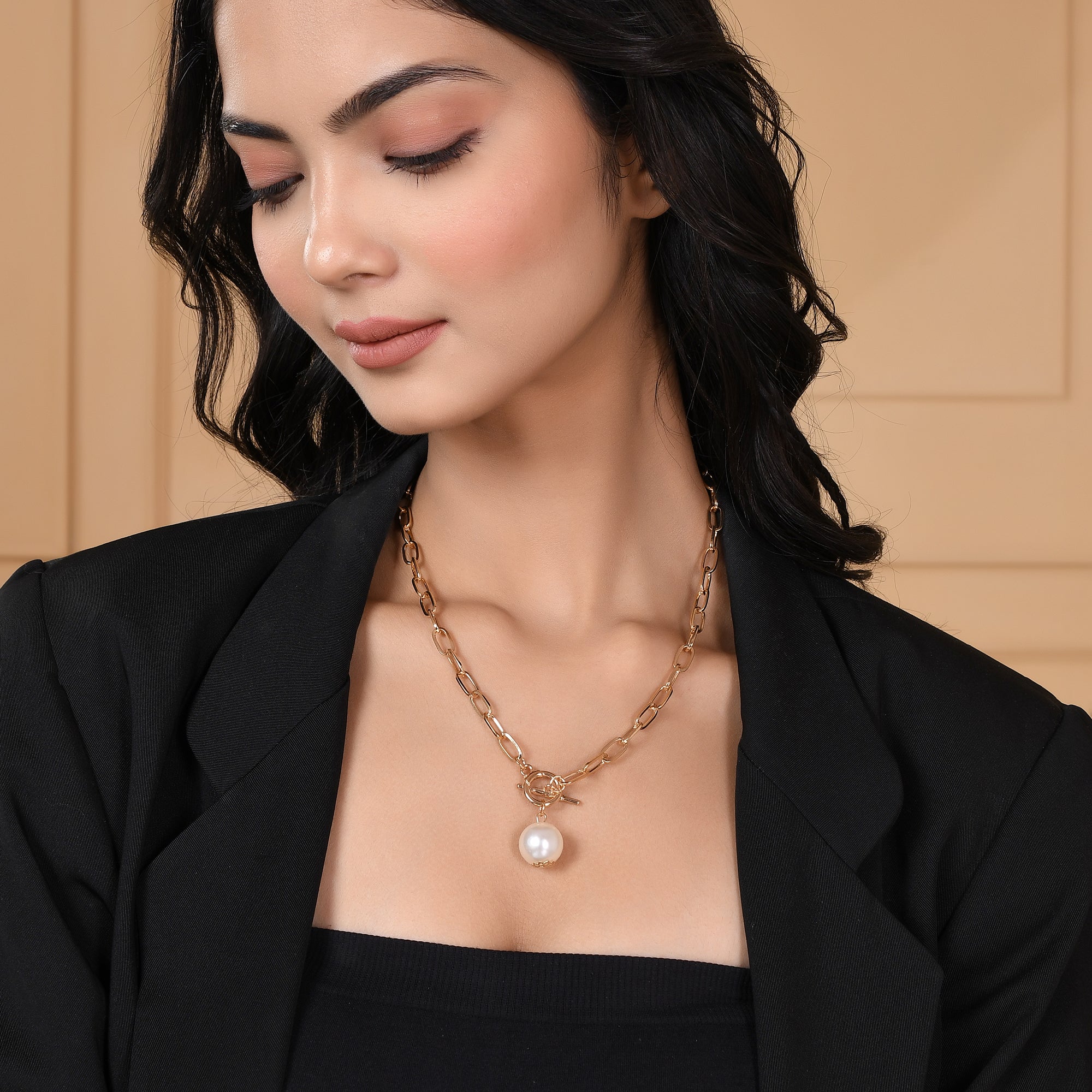 Discover and fall in love with this dreamy toggle pearl necklace. Pearls never go out of style. An instant classic, this chic Pearl necklace will always look on point. Also, this beautiful and elegant baroque freshwater pearl necklace would make the perfect gift. Style Tip: This trendy piece is perfect to pair with dress for a fun day out.