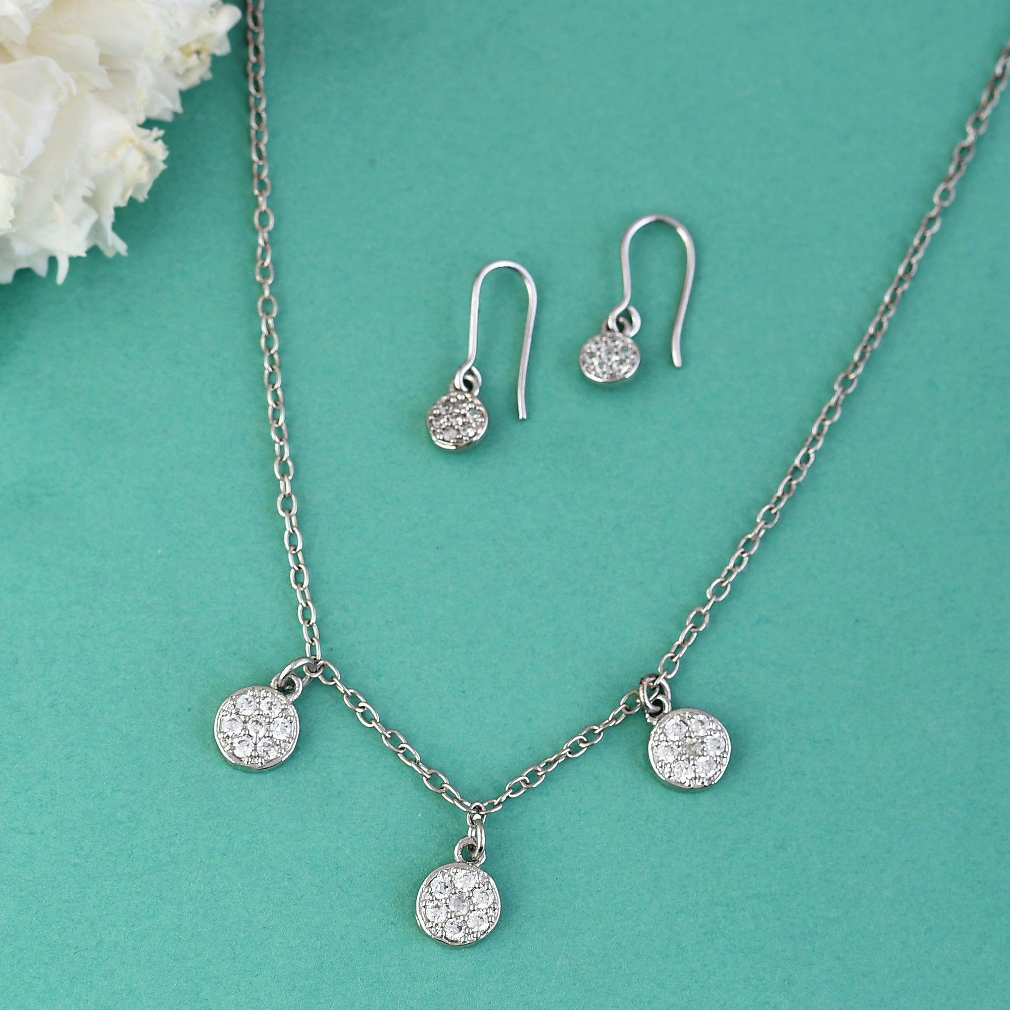 Pearly White Silver Luminance Pendant Set