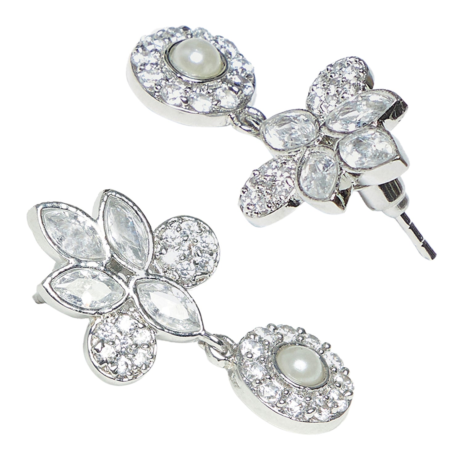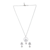 Add definition to your look with this interestingly designed pearl adorned pendant set glittering with CZ sparkles in silver tone. Perfect jewelry to make you shine.