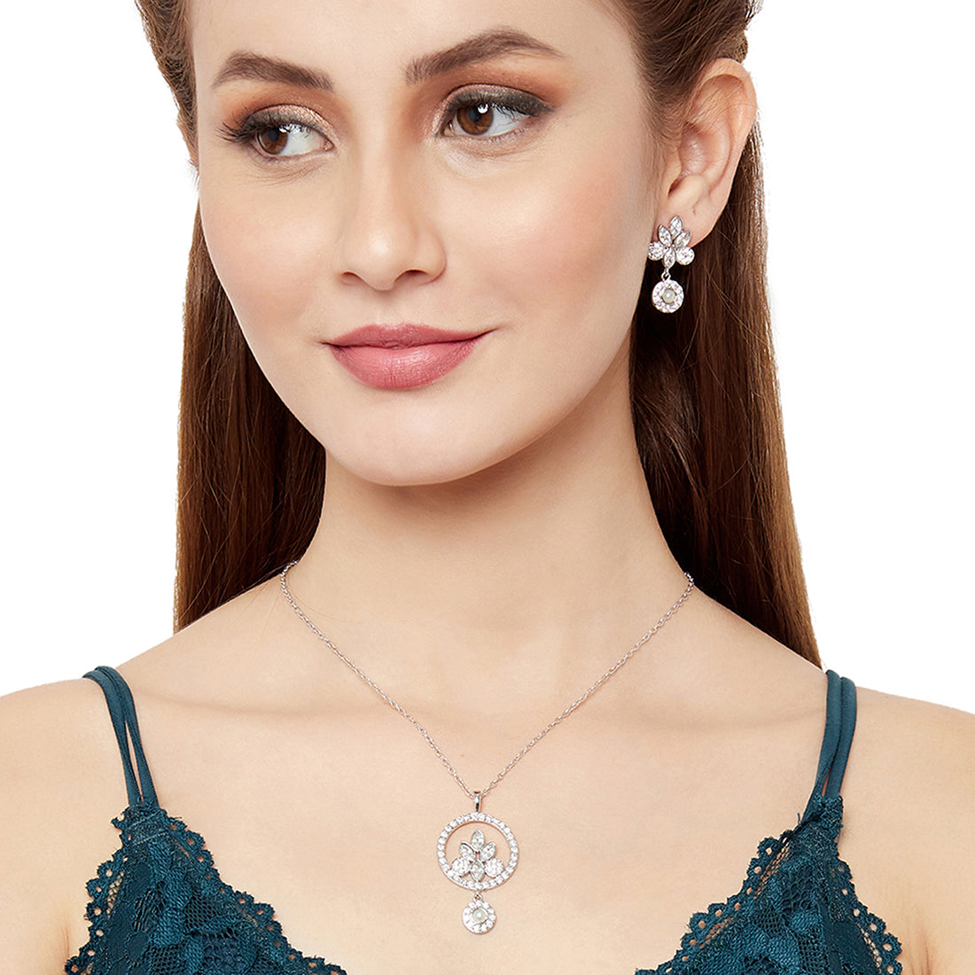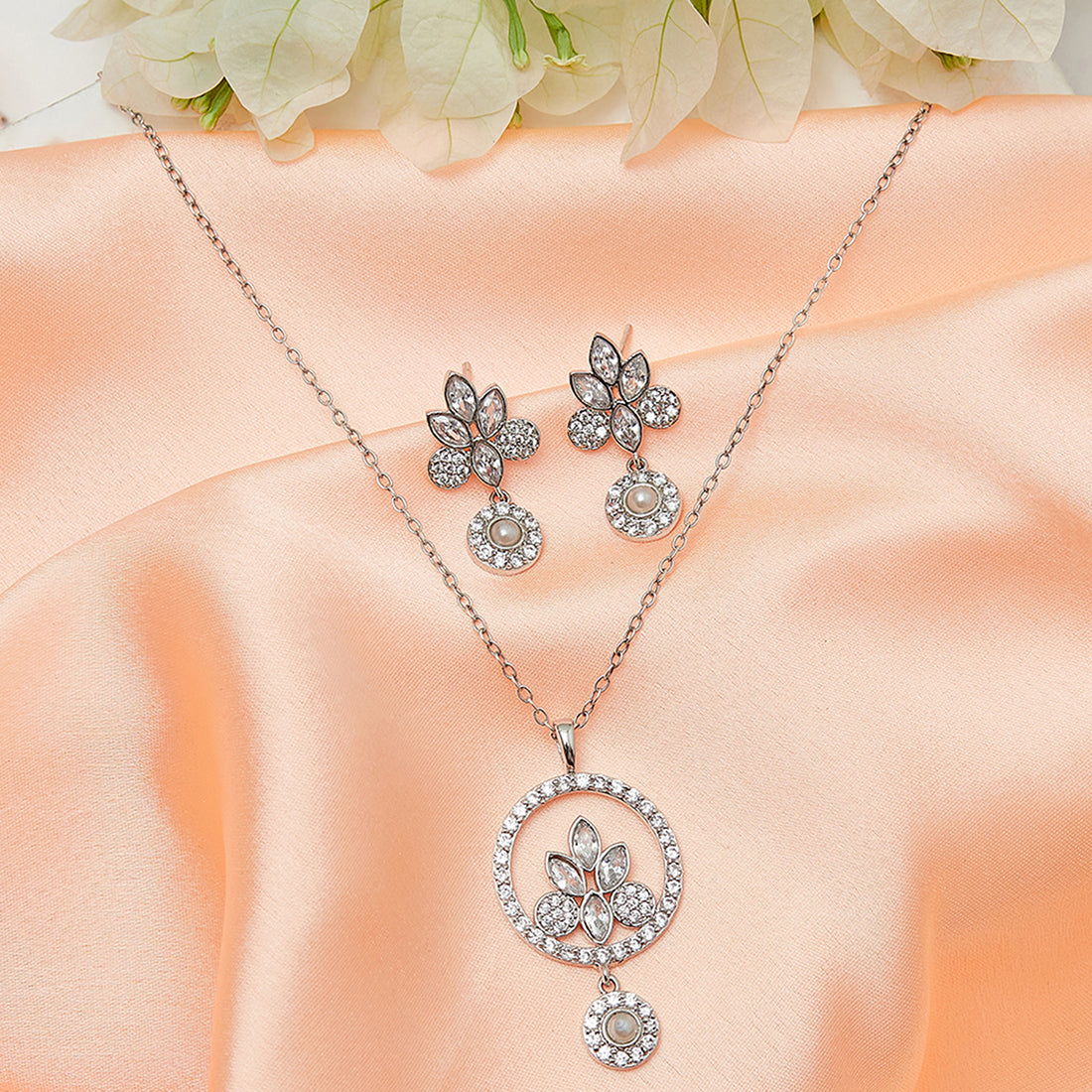 Pearly Whites Pendant with Dangler Earrings
