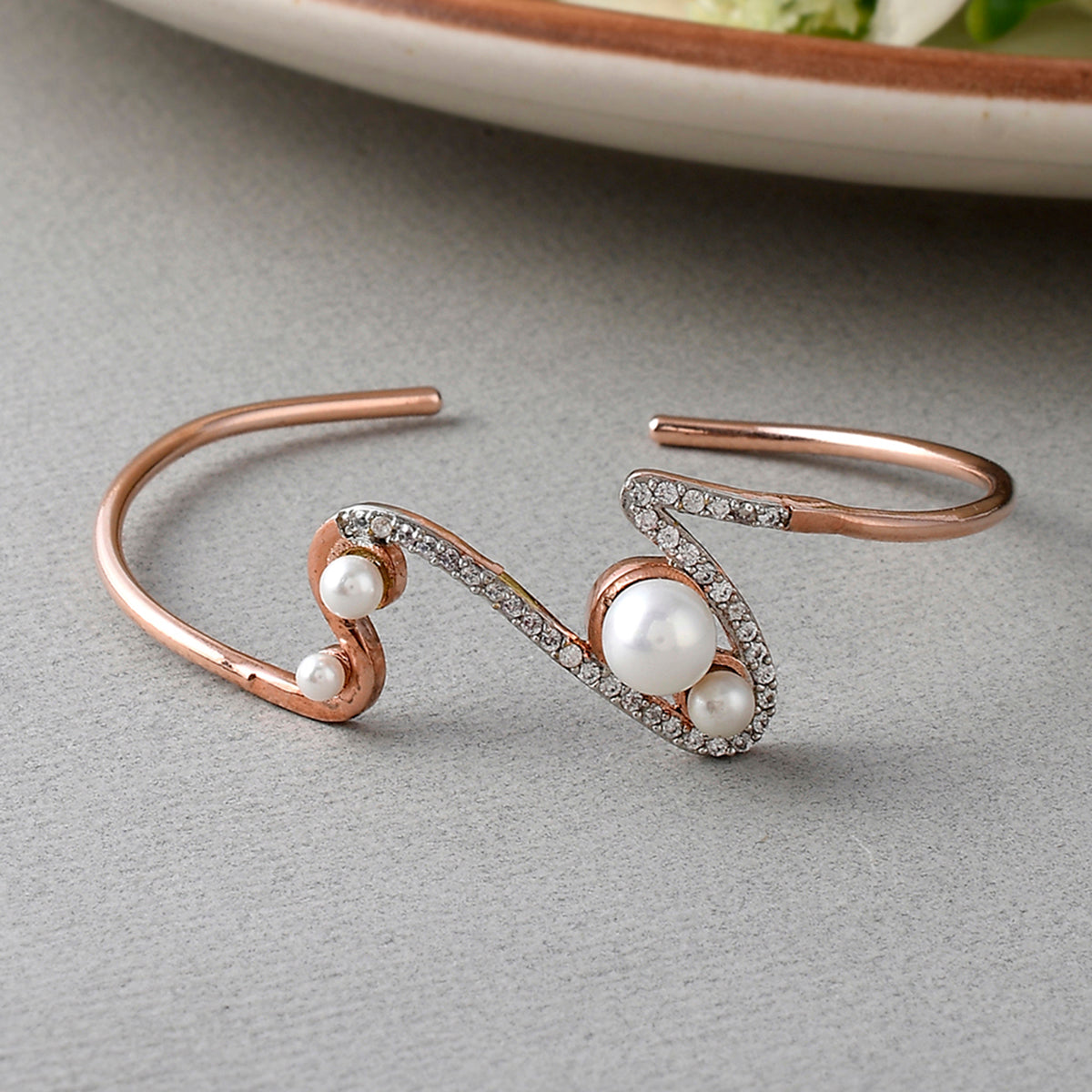 Women's brass bracelet with rose gold plating. Embellished with CZ gems. Good for formal wear.