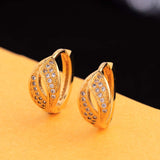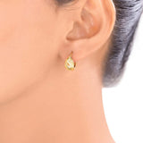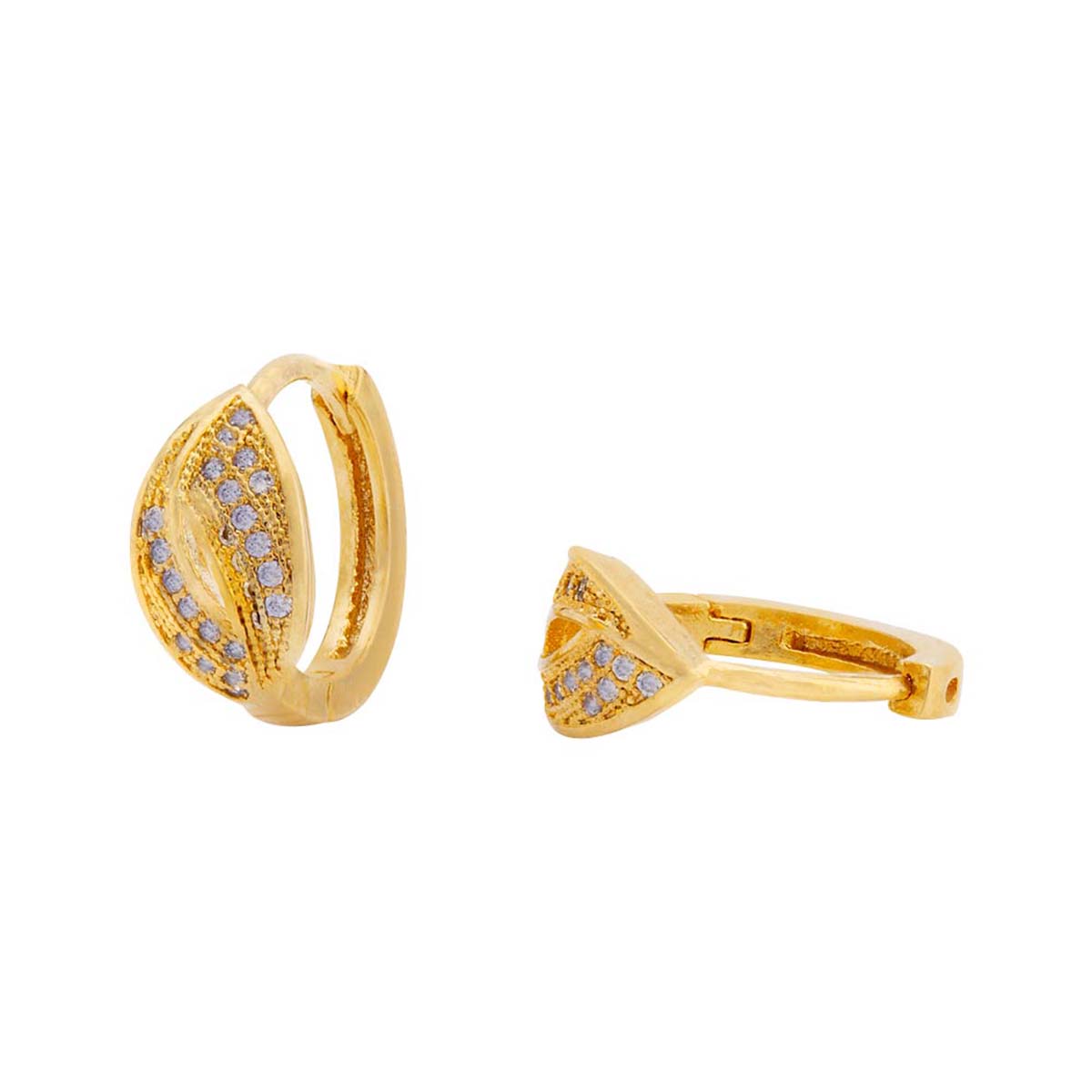 Petal motif earrings with gems. Made from brass and yellow gold plated. Pair with casual attire.