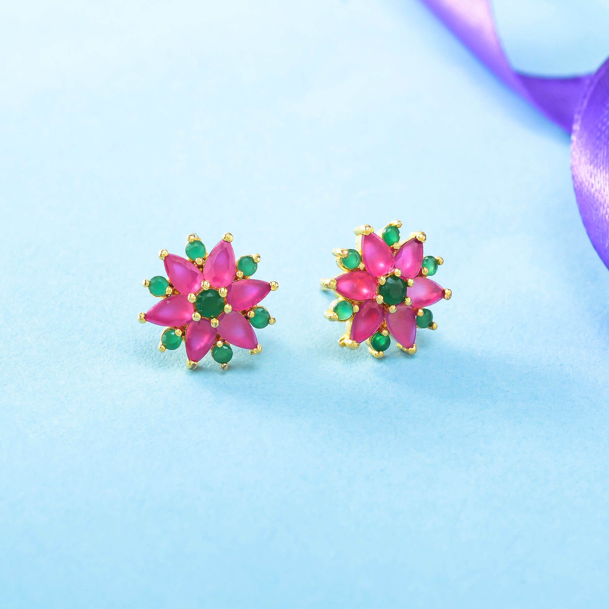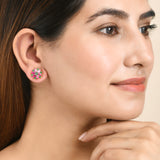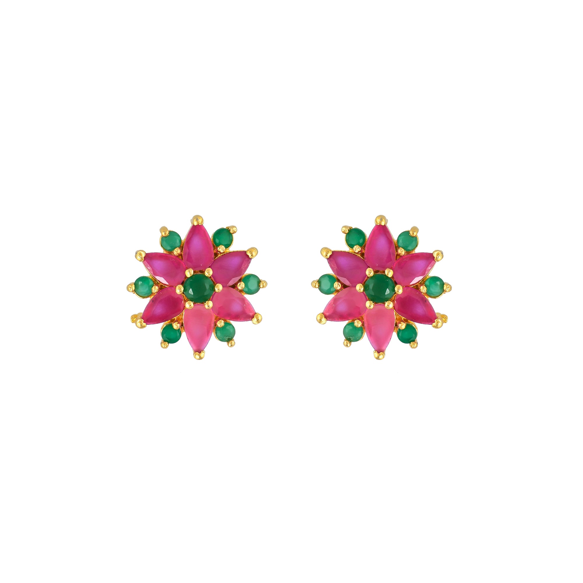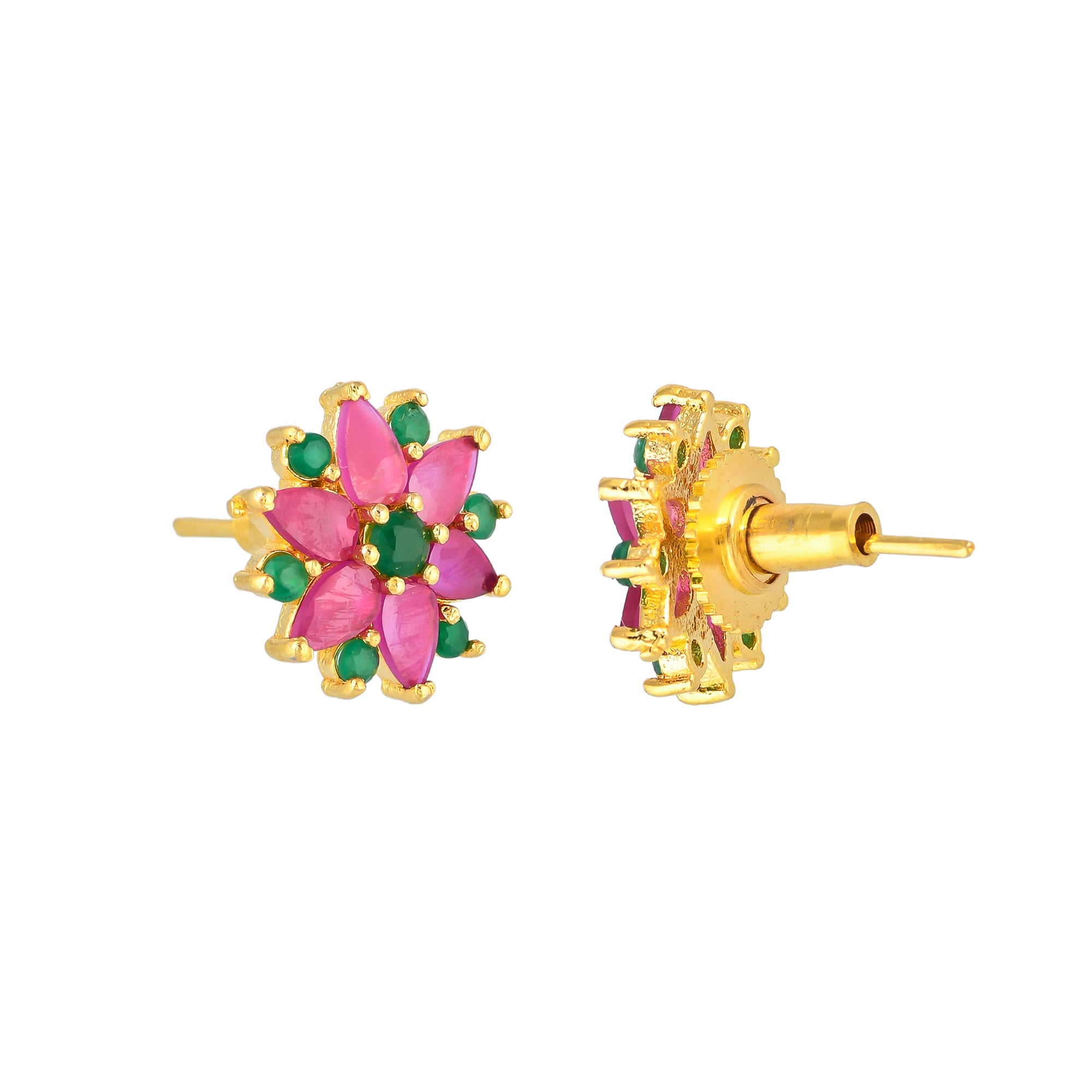 Pink and Green CZ Casual Stud Earrings