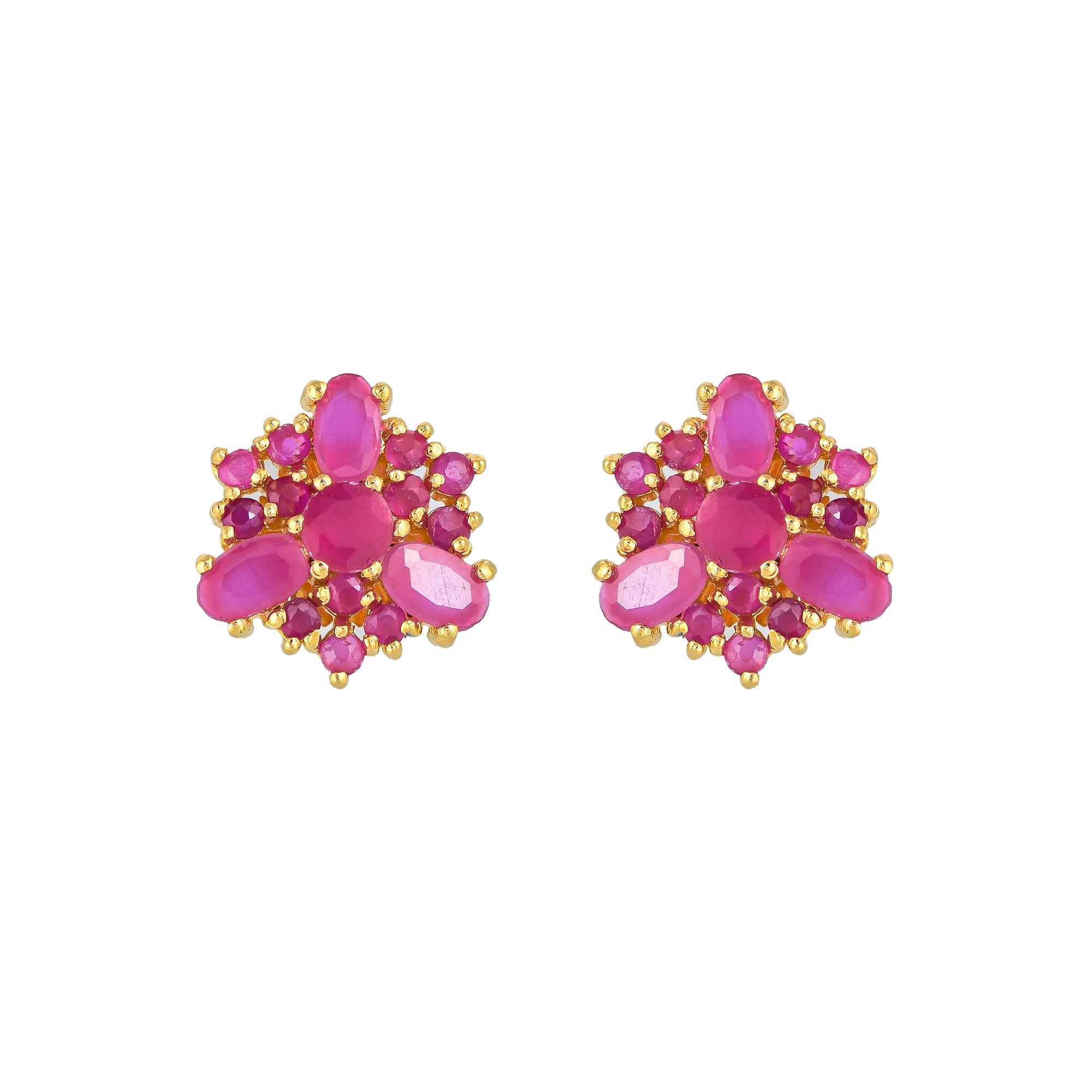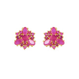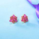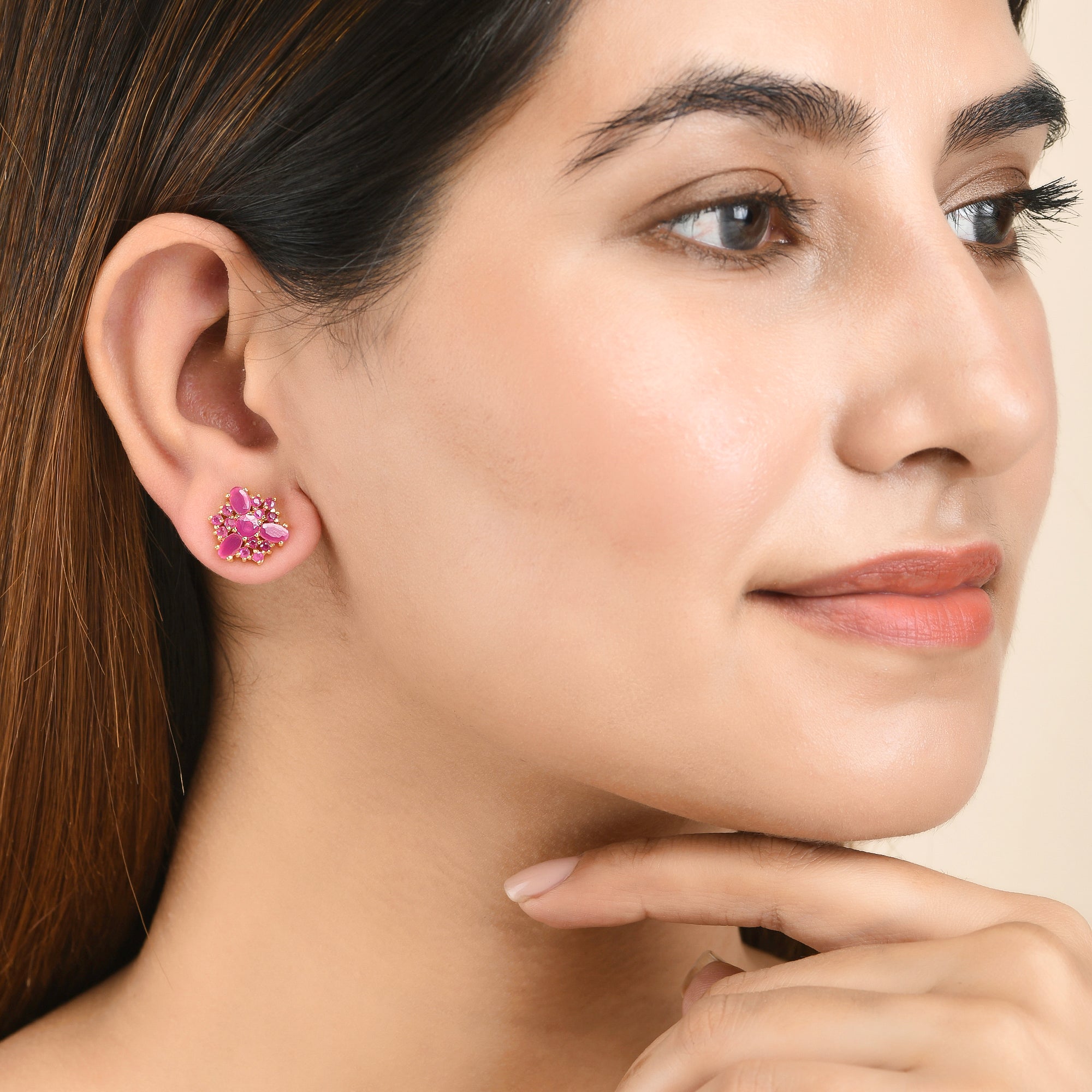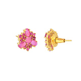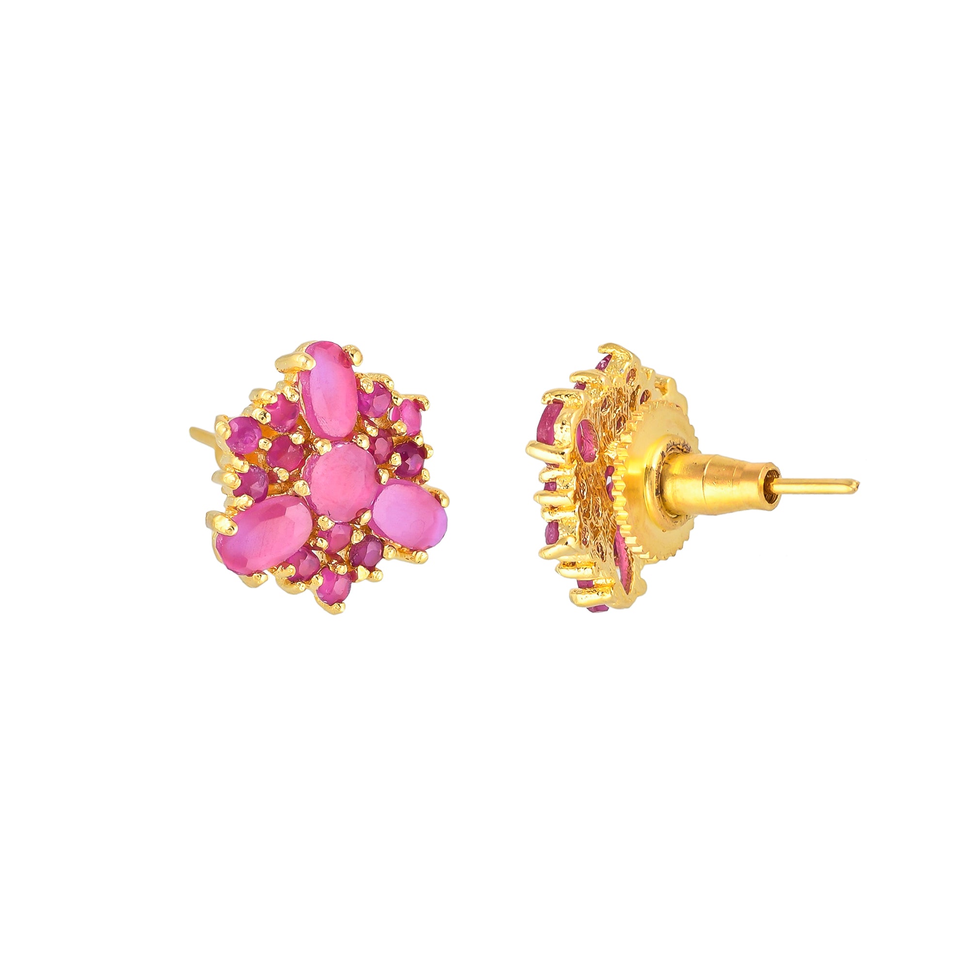 Tiny brass stud style earrings with cluster setting pink CZ gems. Gold plated and a good match for everyday, casual attire.