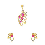 CZ Rose Gold Plated Necklace Set with Green Stones
