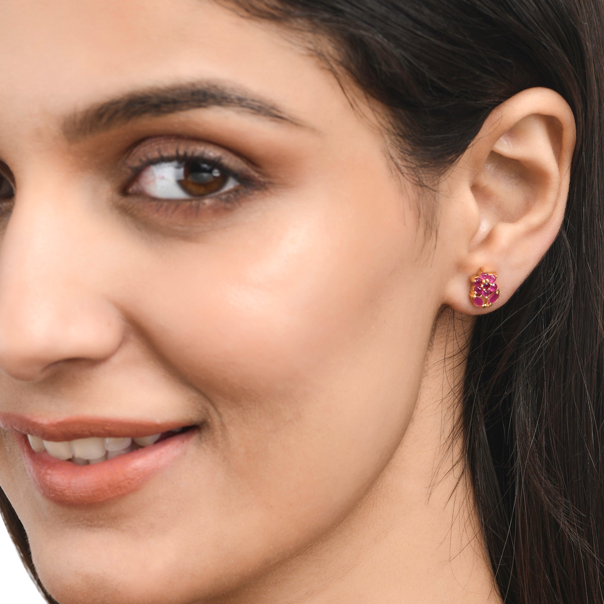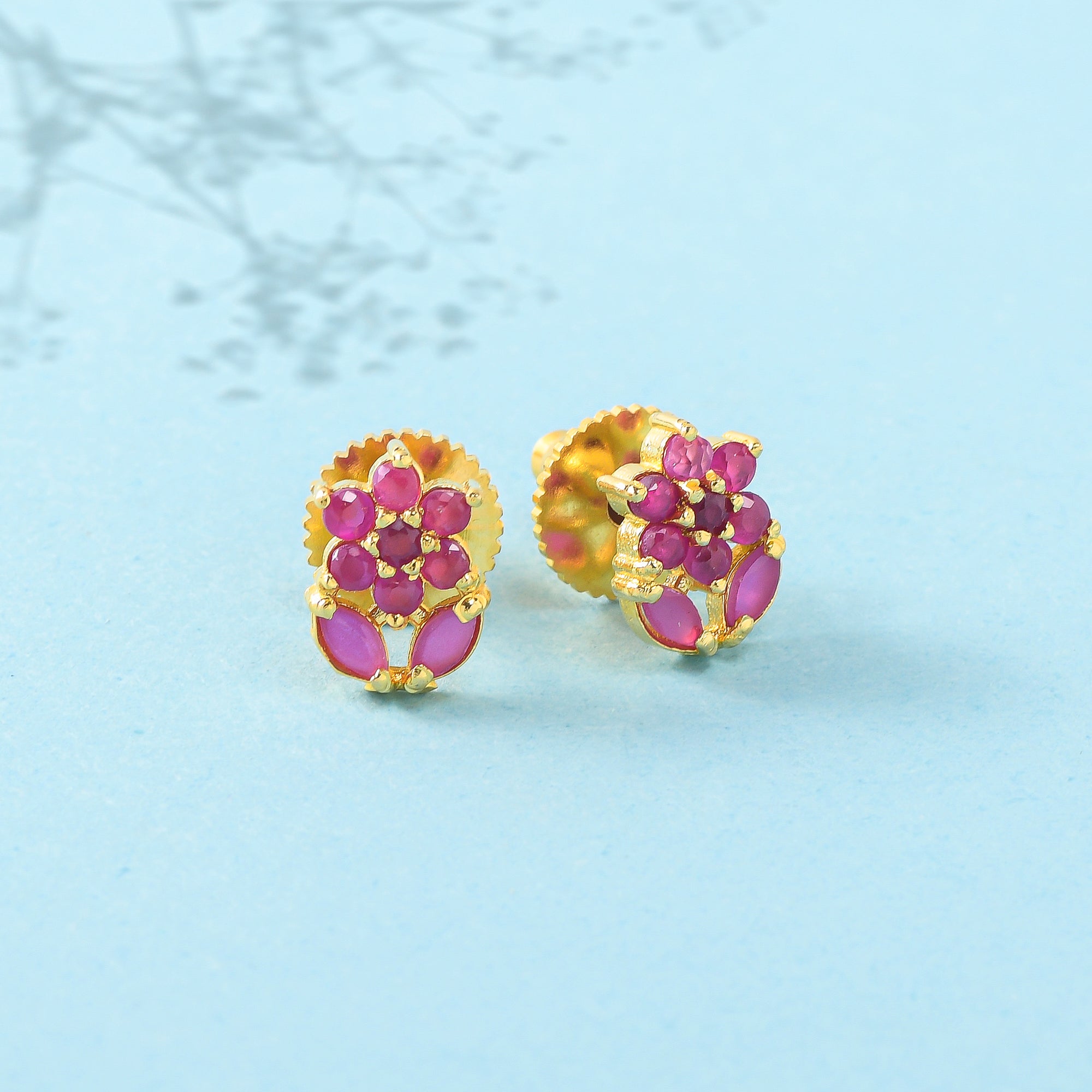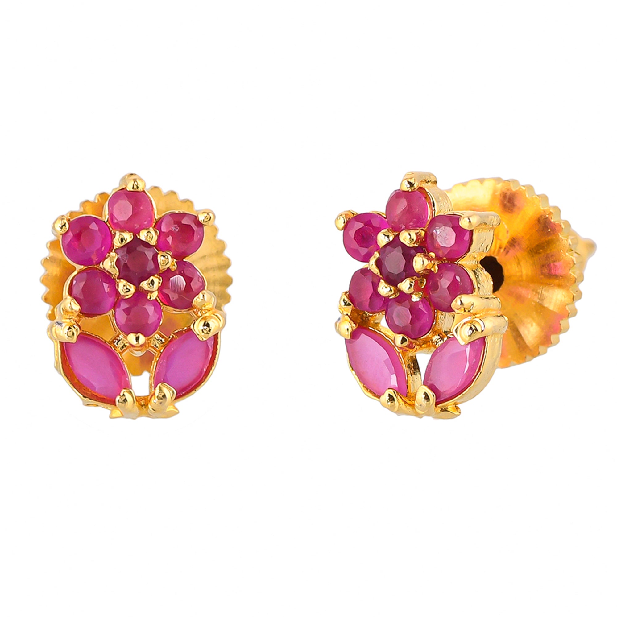 Pink CZ Gems Floral Stud Earrings