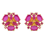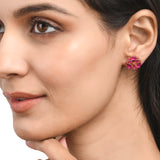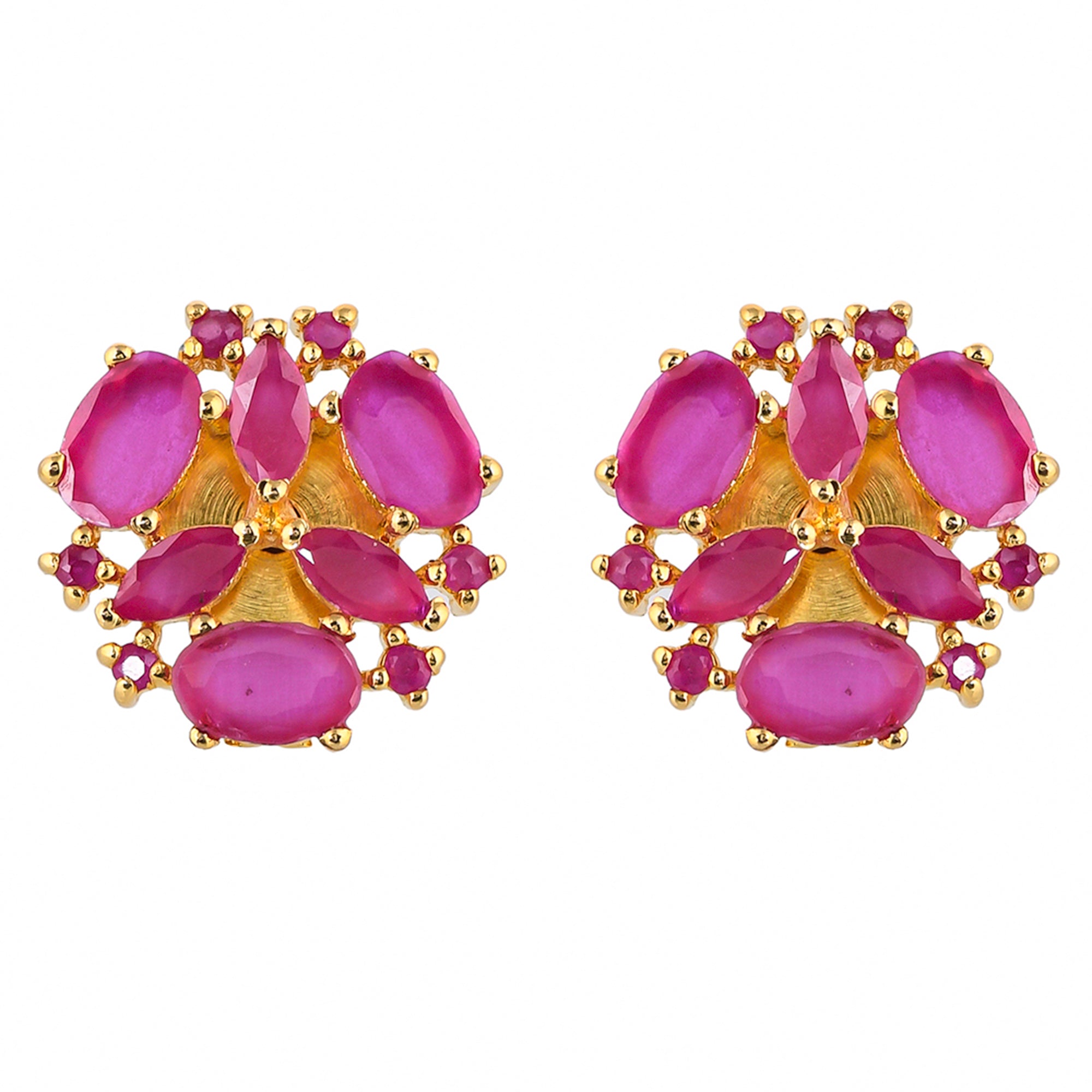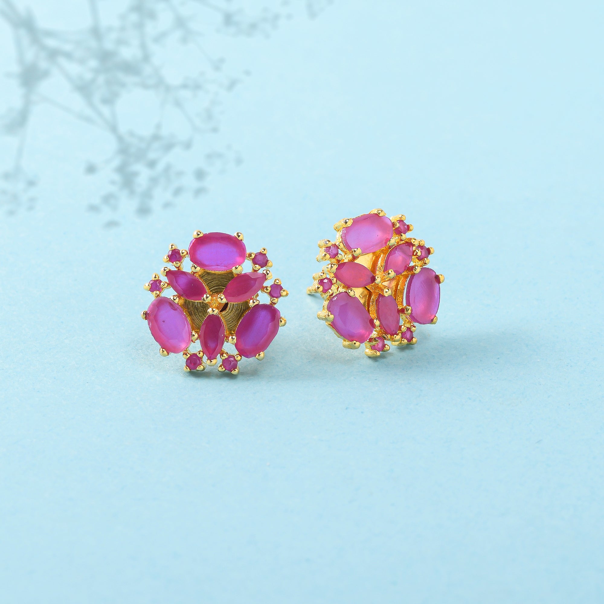 Gold plated stud earrings, fashioned out of brass and adorned with red CZ gemstones. Good for everyday wear.