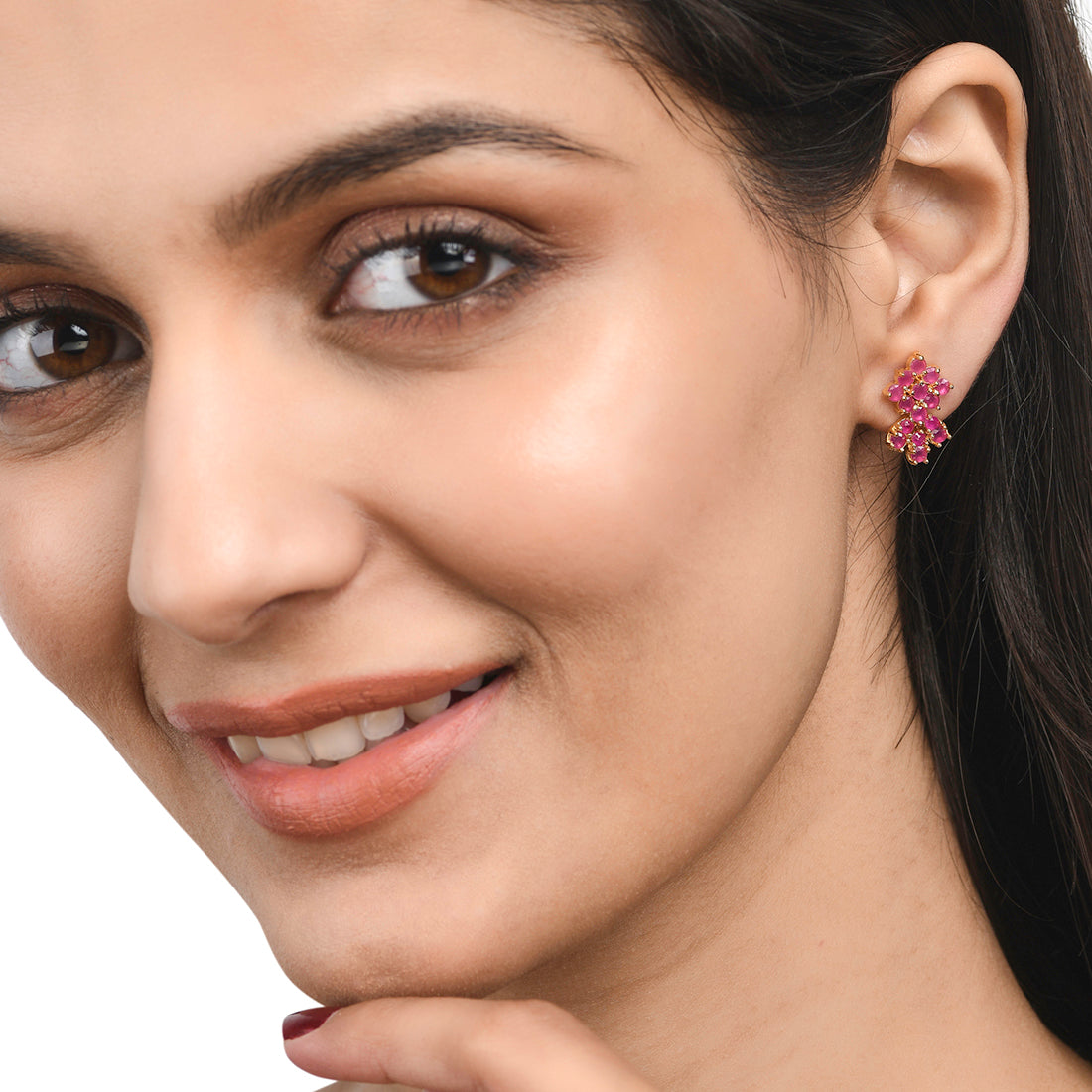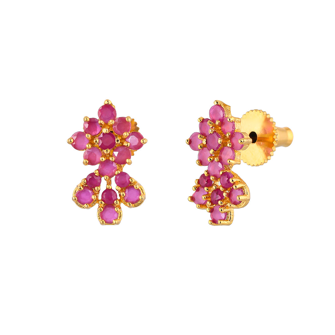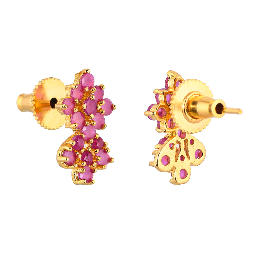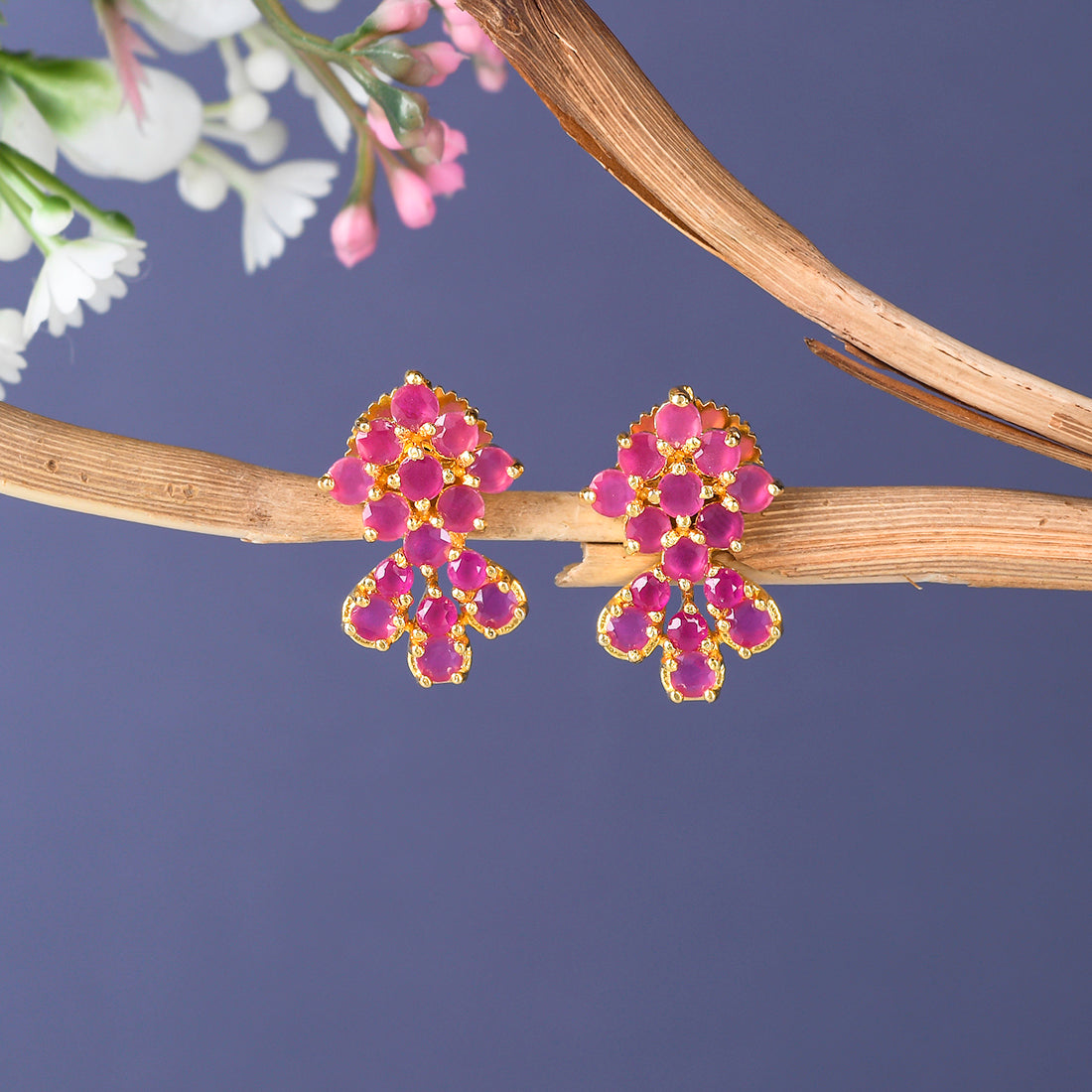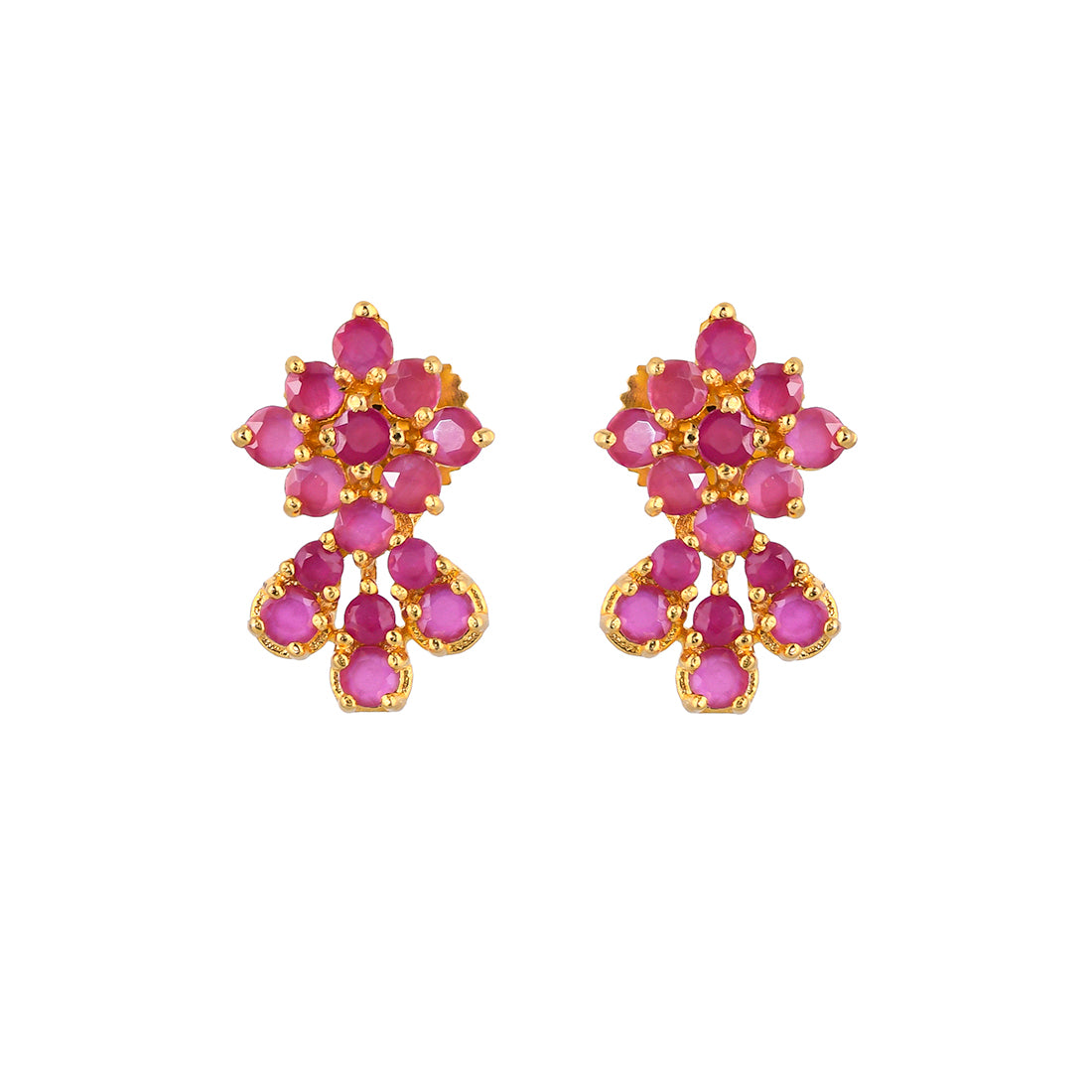 Teardrop cut pink zirconia gems stud earrings, made from brass. Gold plated, lightweight and comfortable.