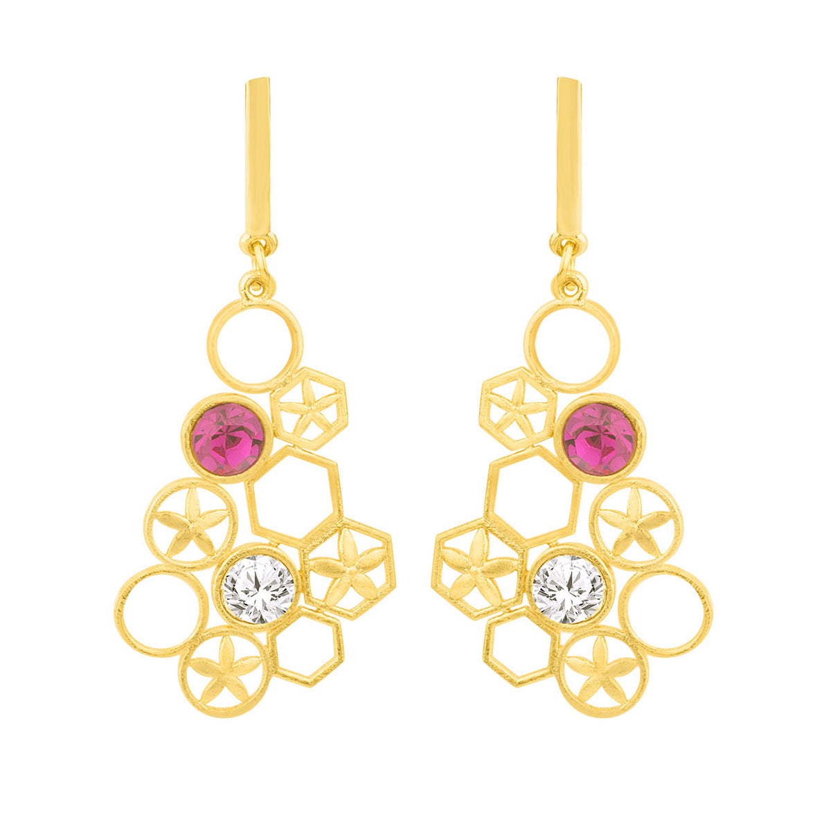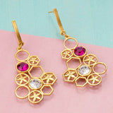 Look young and spirited in these brass Pink n White Crystals Geomatrix earrings. Put them on with a number of outfits in the same colours for the casual days out. This piece of jewelry comes with the Voylla assurance of quality and durability. Caring for your fashion jewelry: We, at Voylla, take care of every piece of jewelry so that you don't spend hours caring for them.