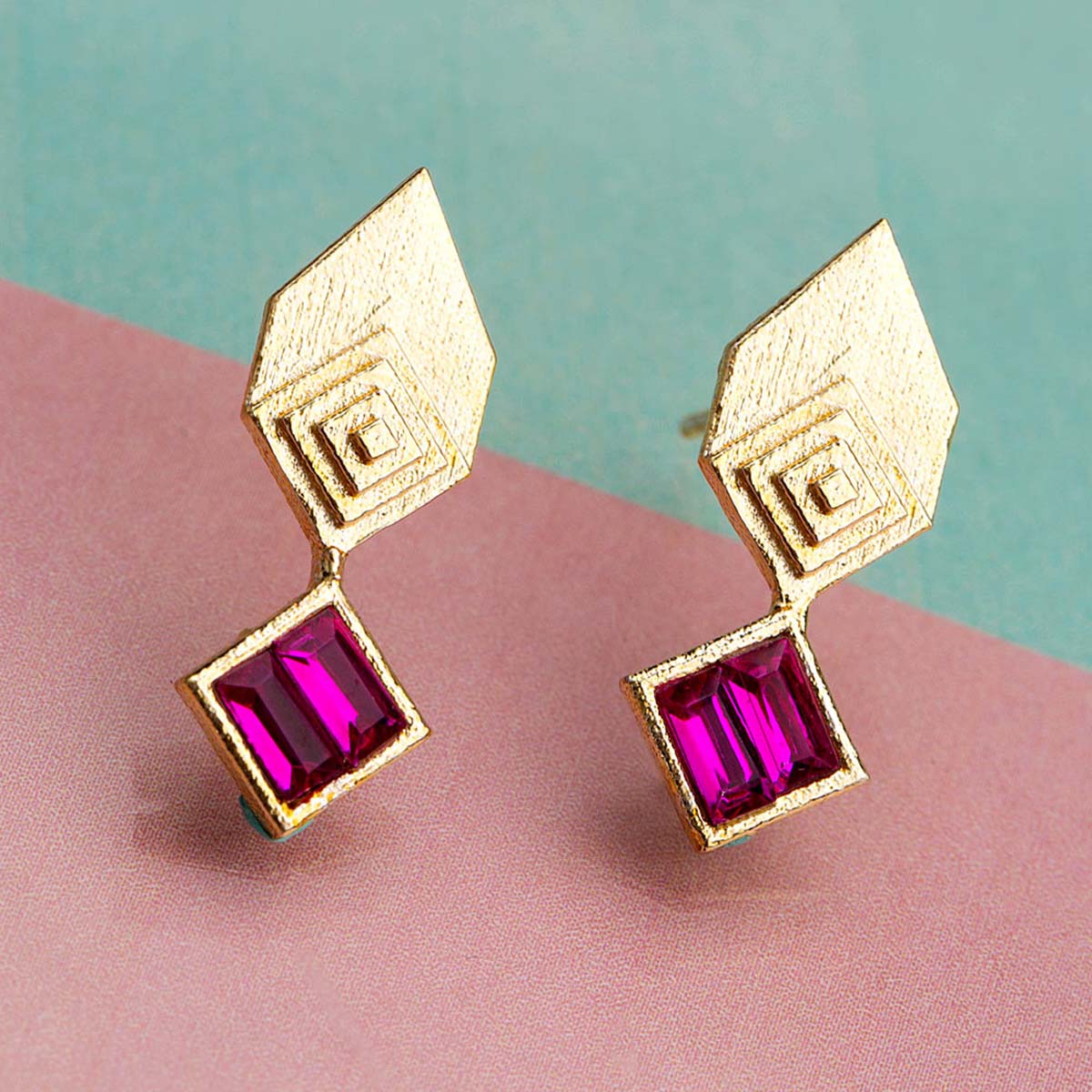 Be a style diva in these brass Pink Quartet Geomatrix earrings. Team with a formal pink dress for that perfect occasion. This piece of jewelry comes with the Voylla assurance of quality and durability. Caring for your fashion jewelry: We, at Voylla, take care of every piece of jewelry so that you don't spend hours caring for them.