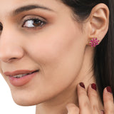 Pink Round and Marquise Cut CZ Floral Stud Earrings