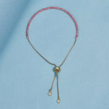 Pink Round Cut CZ Adorned Brass Gold Plated Chain Bracelet