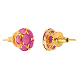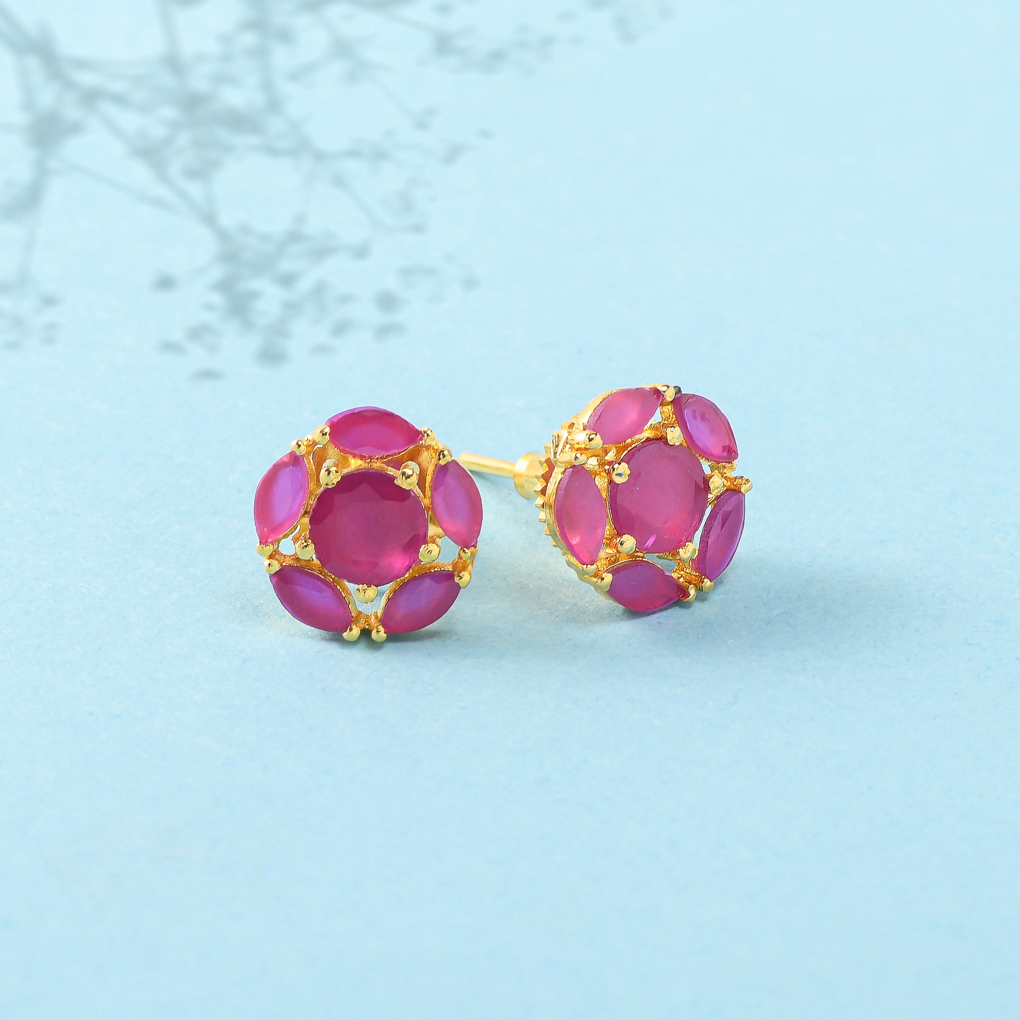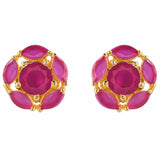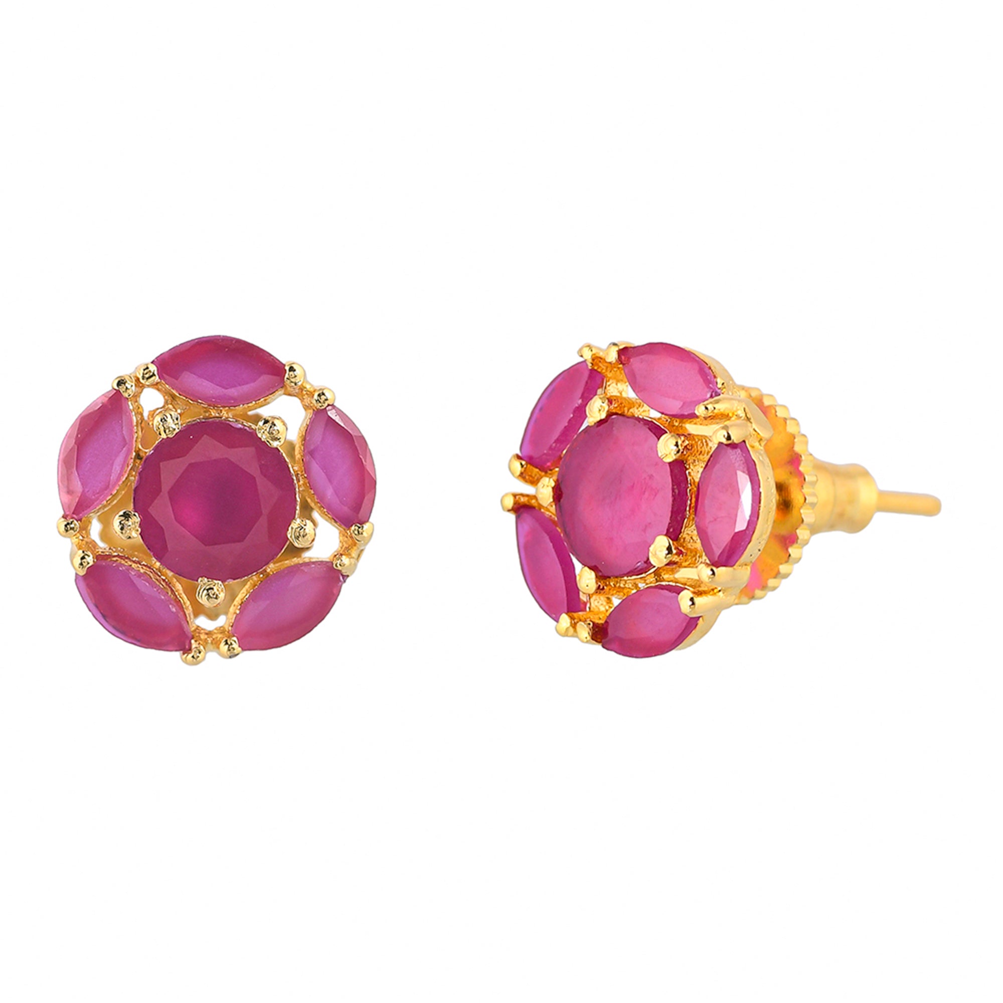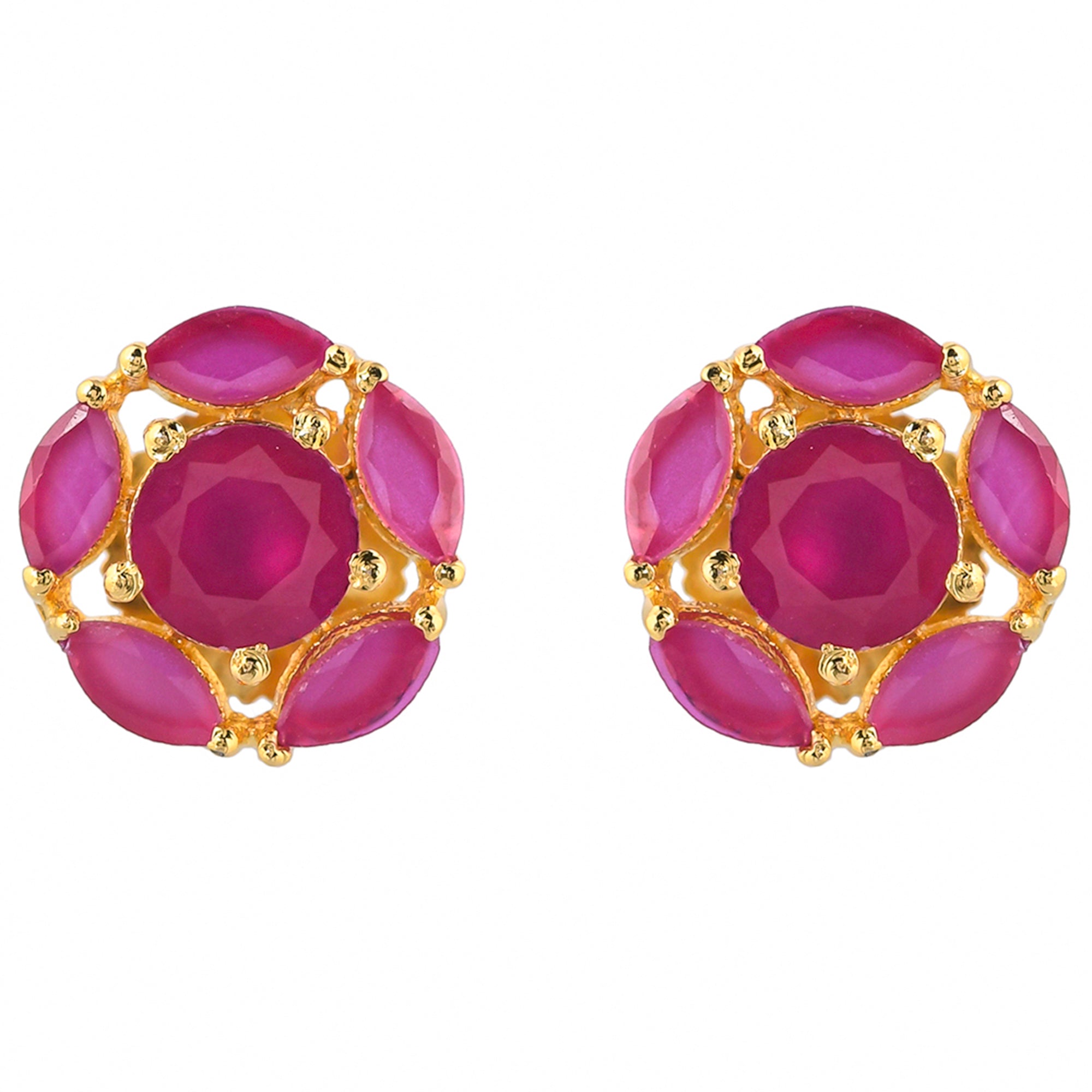 Pink, round cut zirconia gemstones stud earrings. Made from brass and gold plated. Pair with everyday attire.