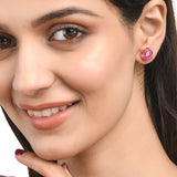 Pink Round Cut CZ Gems Stud Earrings