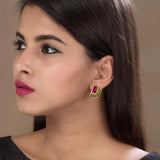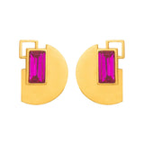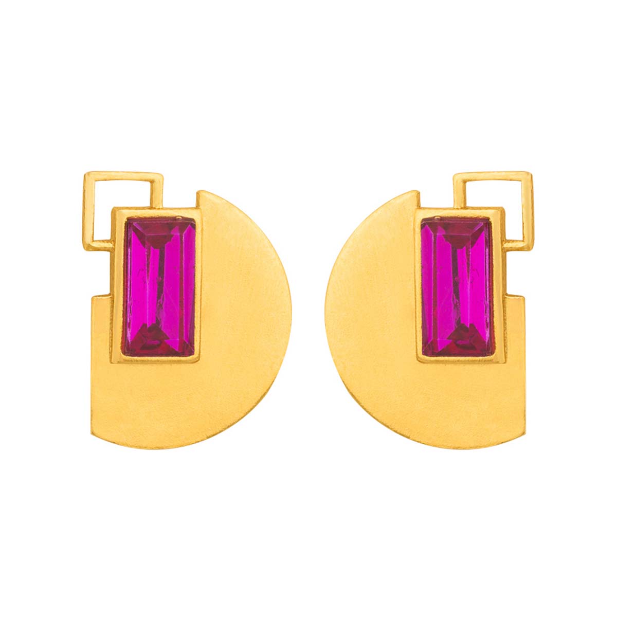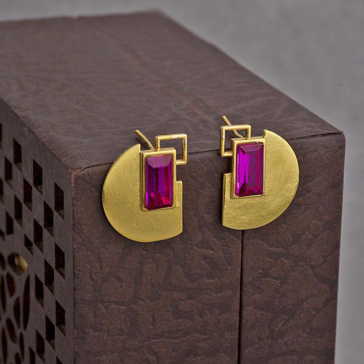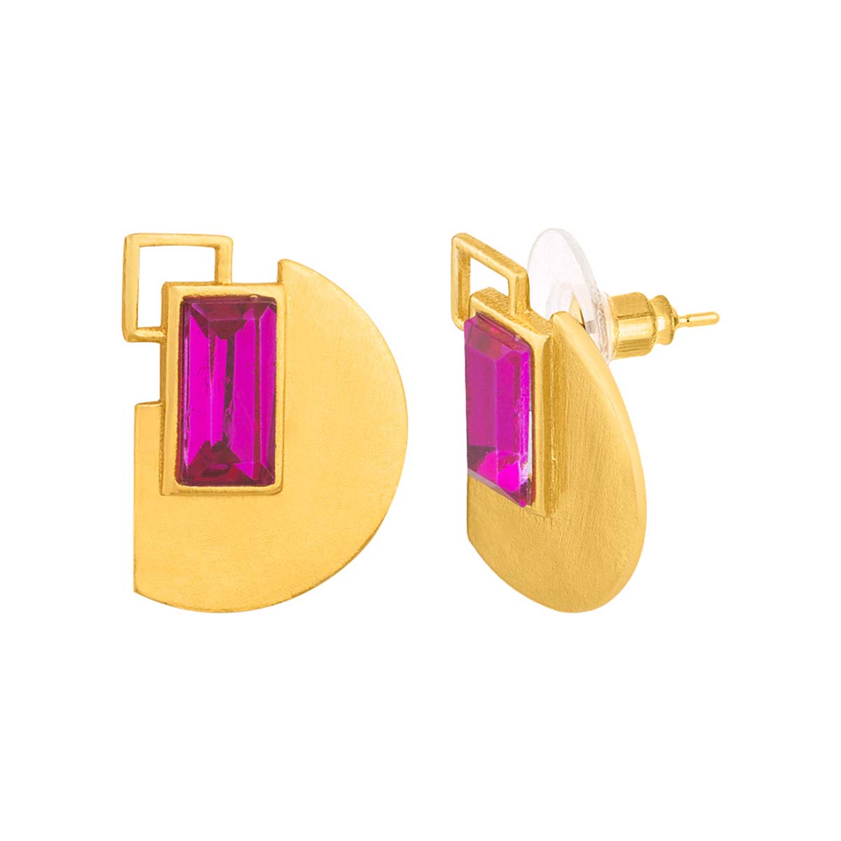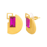 Get the pretty elegant look with this gold-plated pink stone studded stud earrings from the Geomatrix collection. Wear them with black or white long kurta and heels. This piece of jewelry comes with the Voylla assurance of quality and durability. Caring for your fashion jewelry: We, at Voylla, take care of every piece of jewelry so that you don't spend hours caring for them.