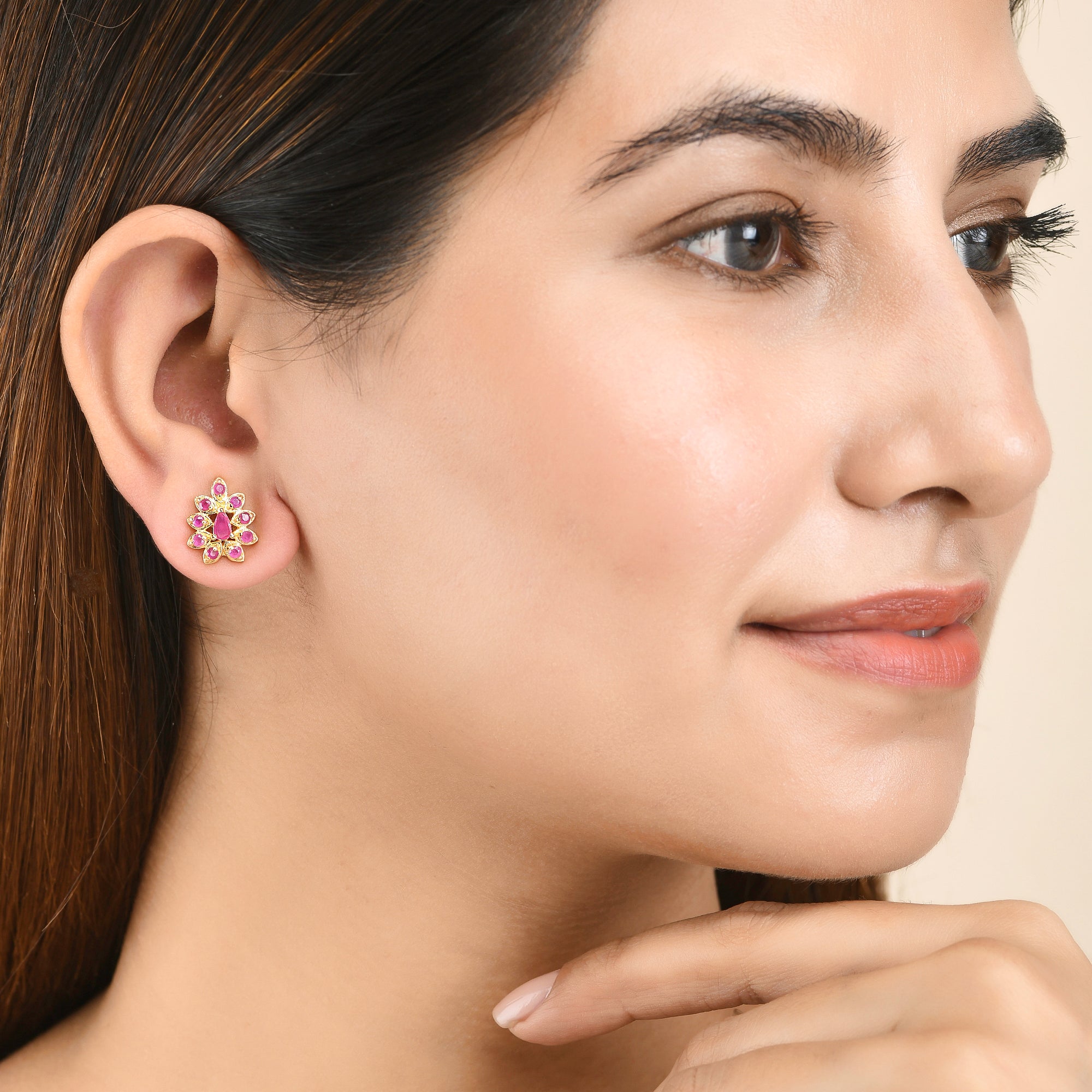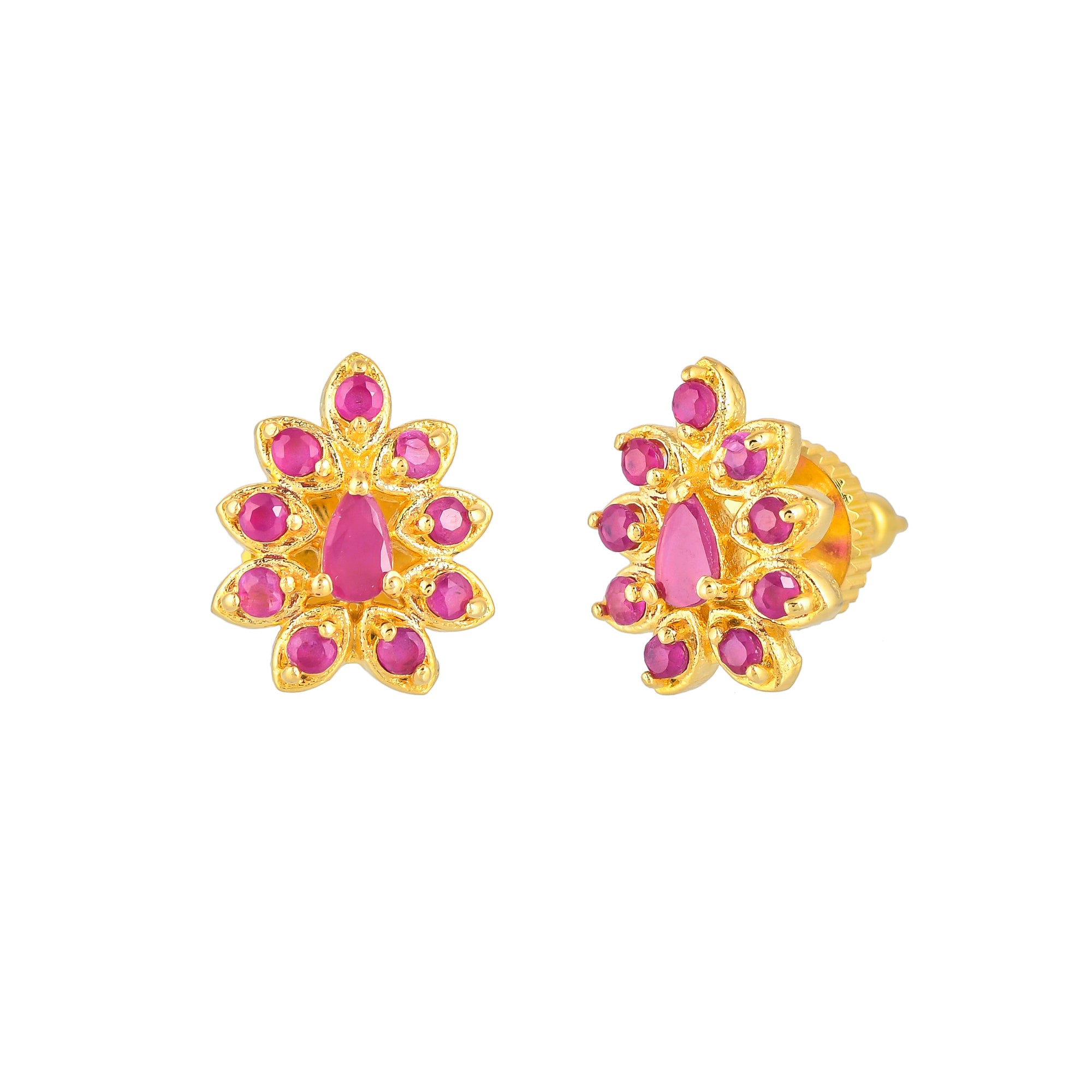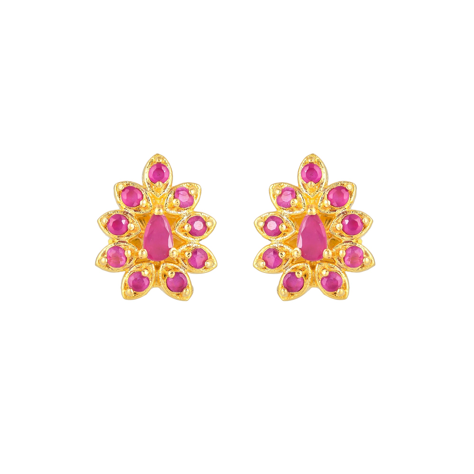 Pink Zirconia Gems Gold Plated Stud Earrings