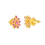Pink cubic zirconia gemstones adorned stud earrings with yellow gold plating. Crafted from brass. Good for everyday wear.