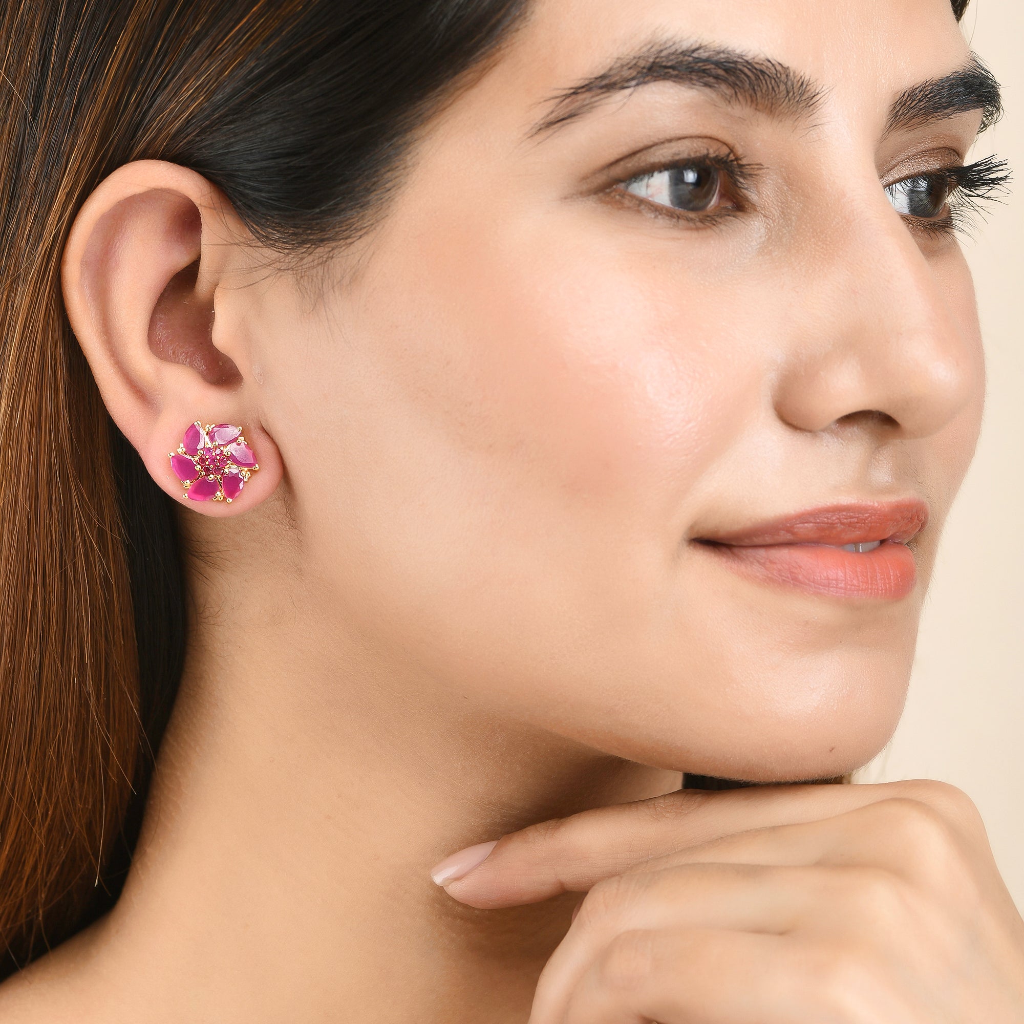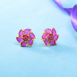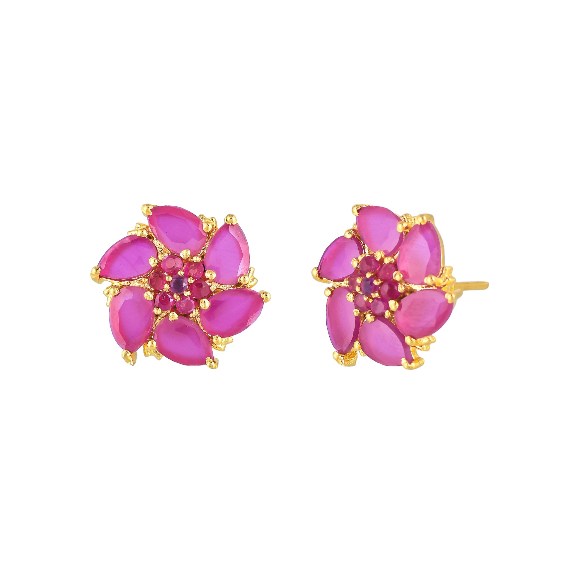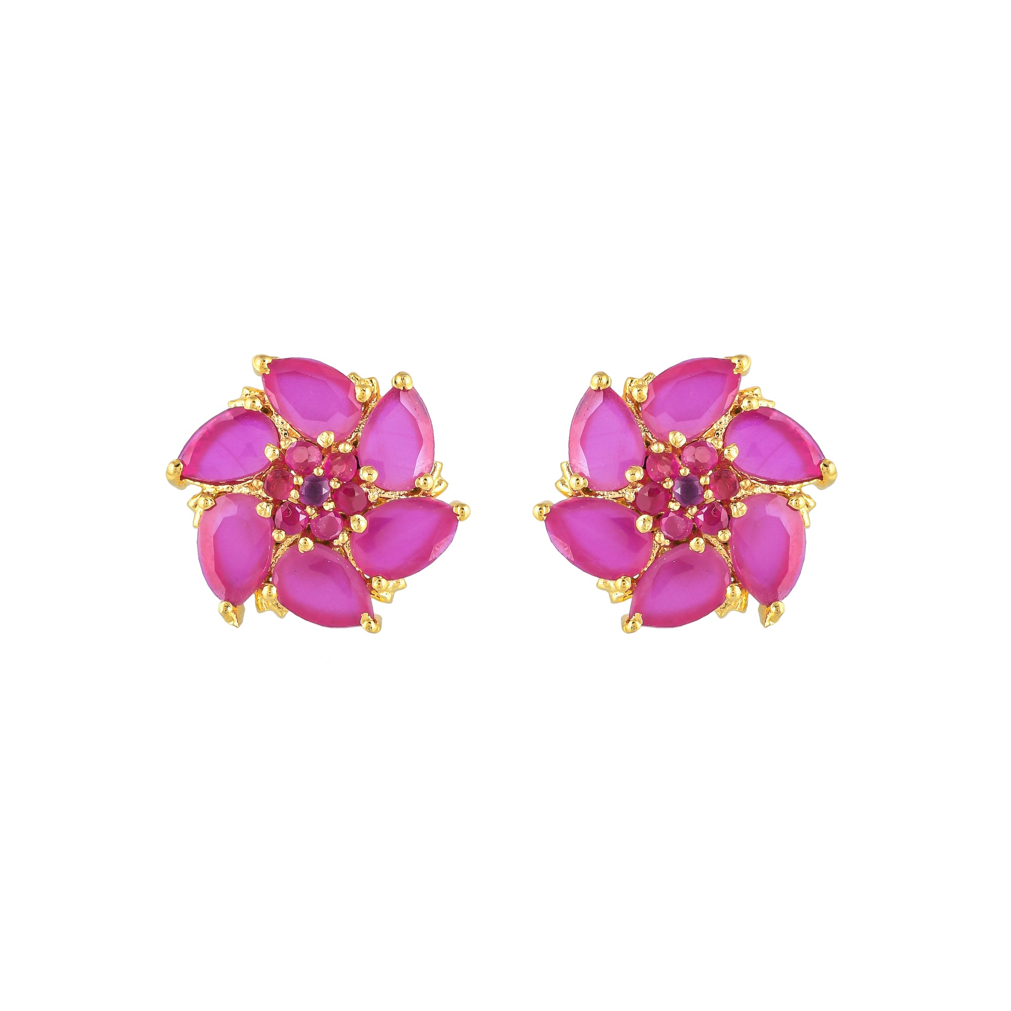 Pink Zirconia Gemstones Adorned Stud Earrings