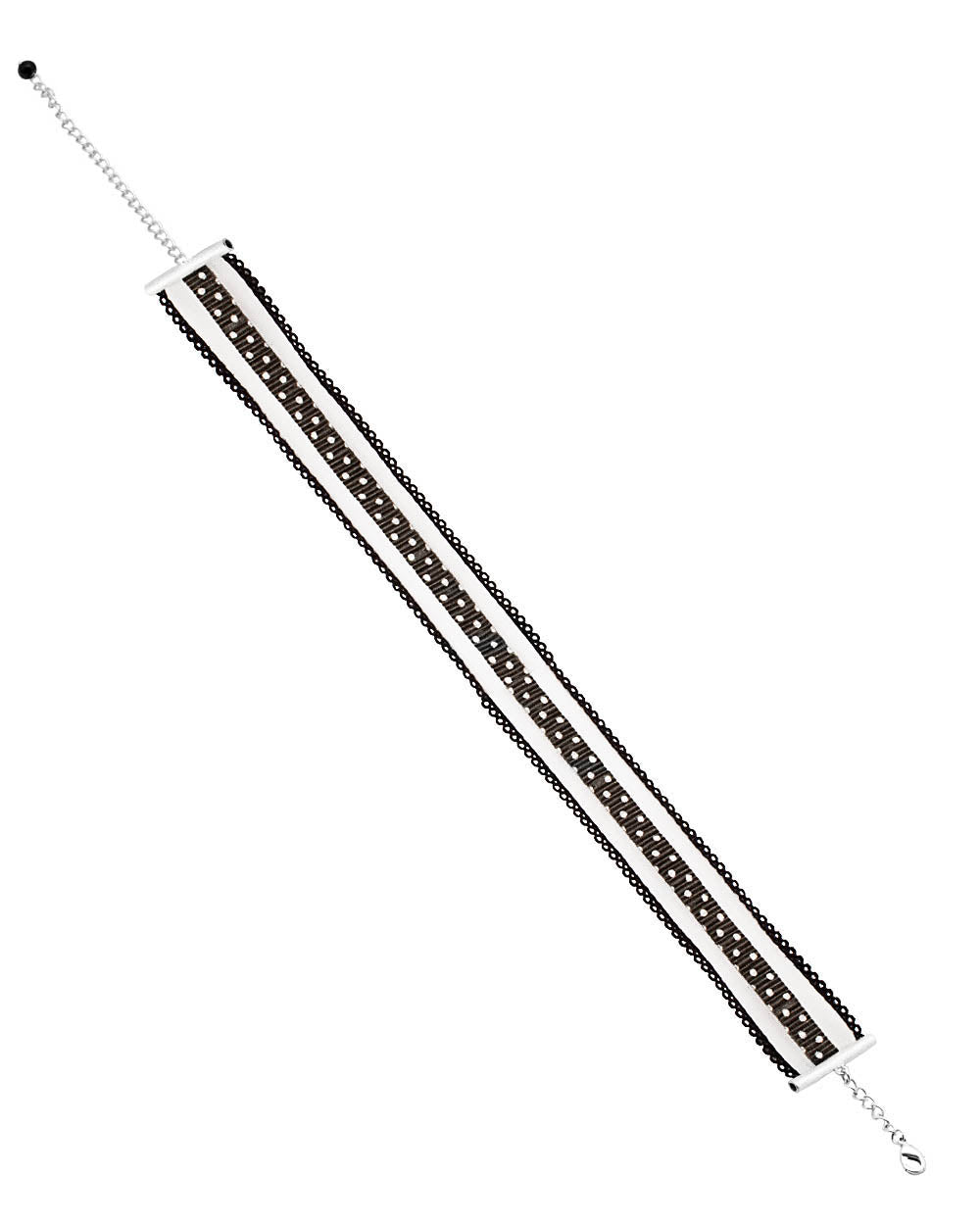 Go elegant on the accessories to achieve a classy look. Wear this choker necklace featuring a beautiful polka design. Wear it with a sleek ponytail and a subtle dress to accentuate the piece.
