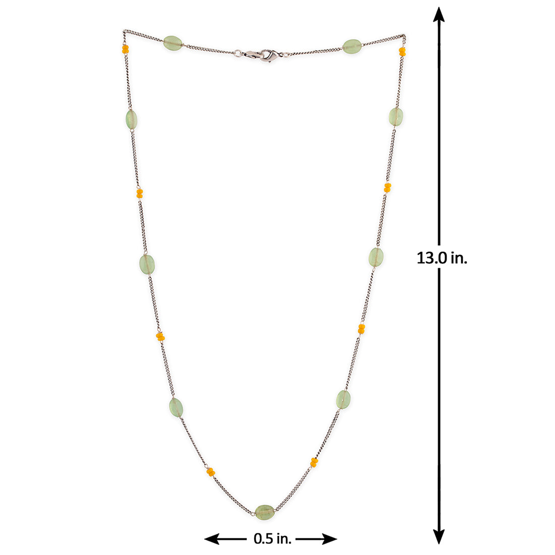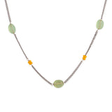 This lovely statement chain features sections of beautiful stones and yellow beads. This oxidized silver chain is crafted out of solid brass and goes well with many different looks.