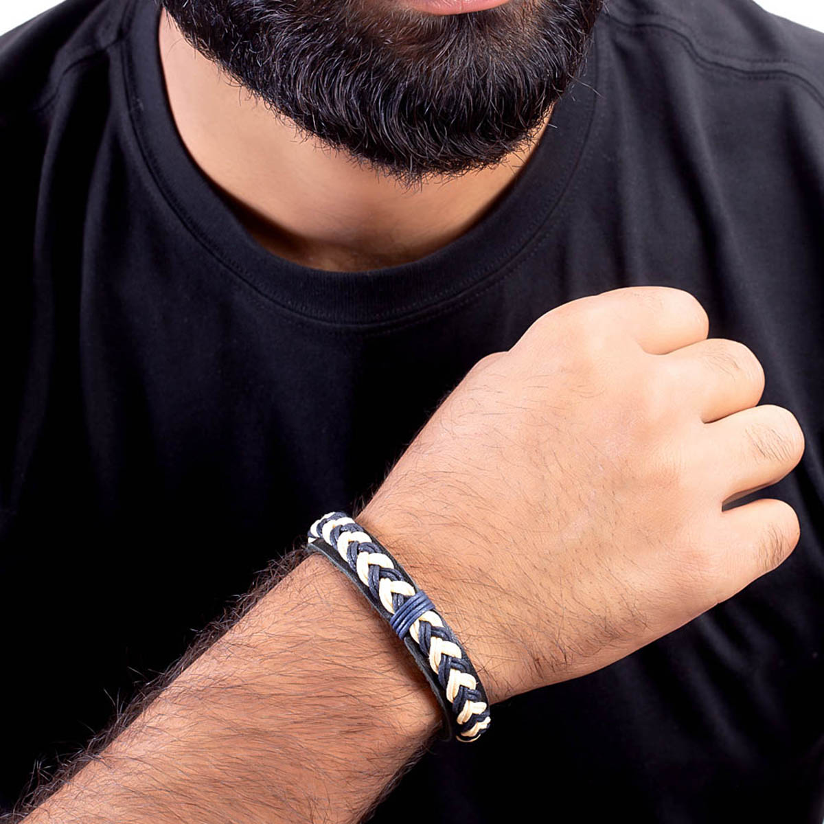 Add this classy dual tone bracelet to your accessory collection! Made of fine PU leather and thread work.