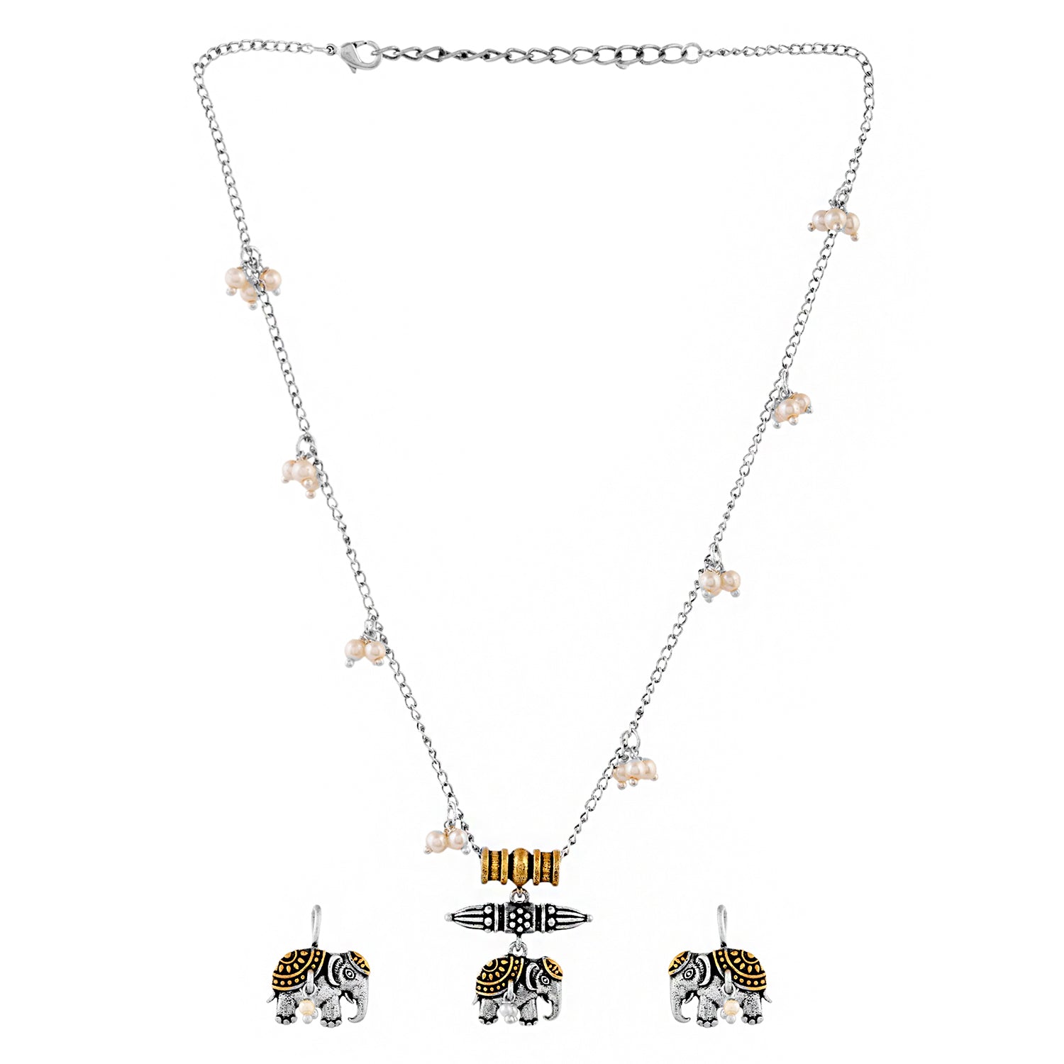 Qasbah Gajraj Oxidised Two Tone Necklace Set