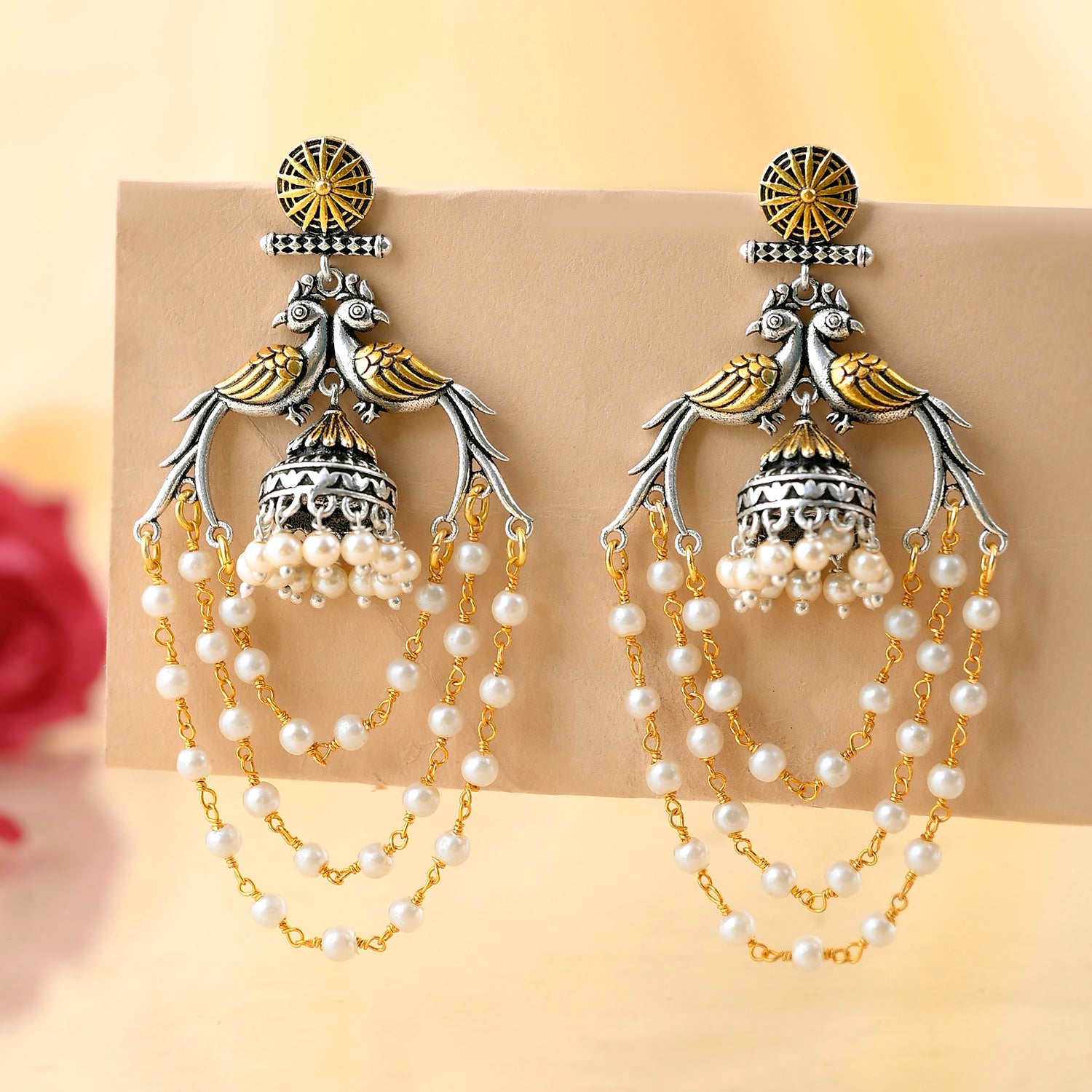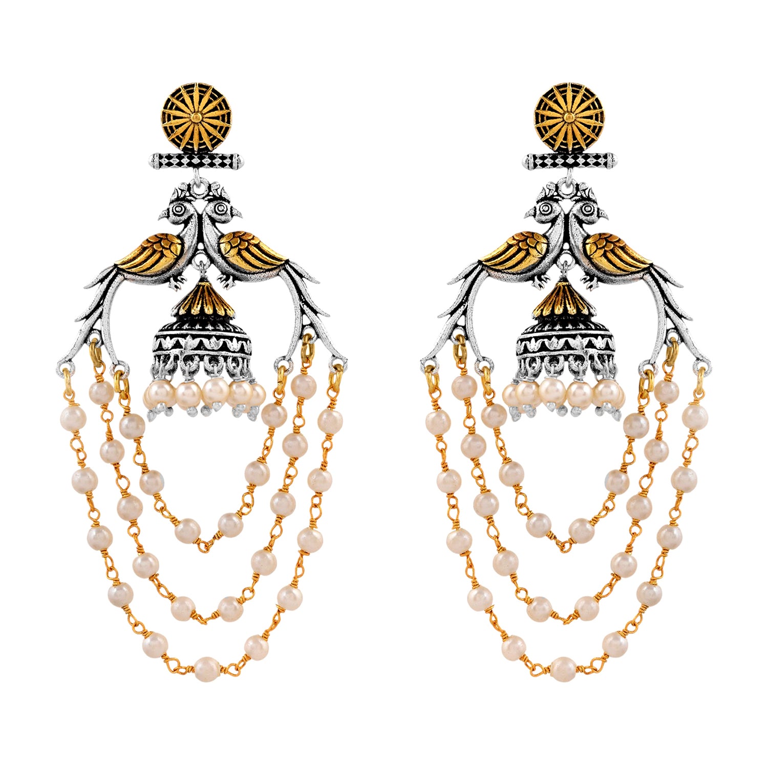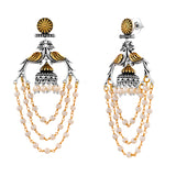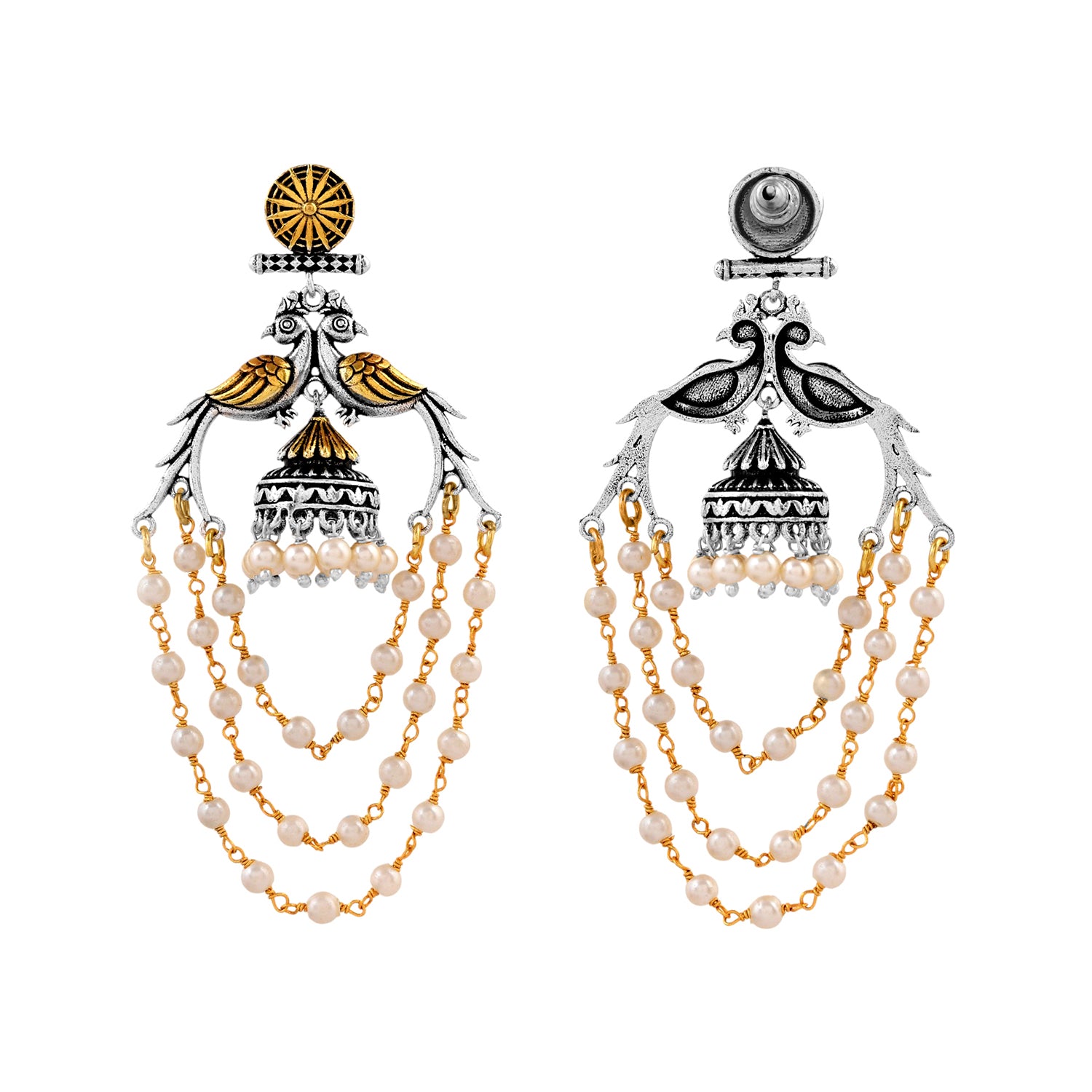 Qasbah Mayura Oxidised Two Tone Dangle Earrings