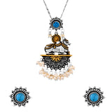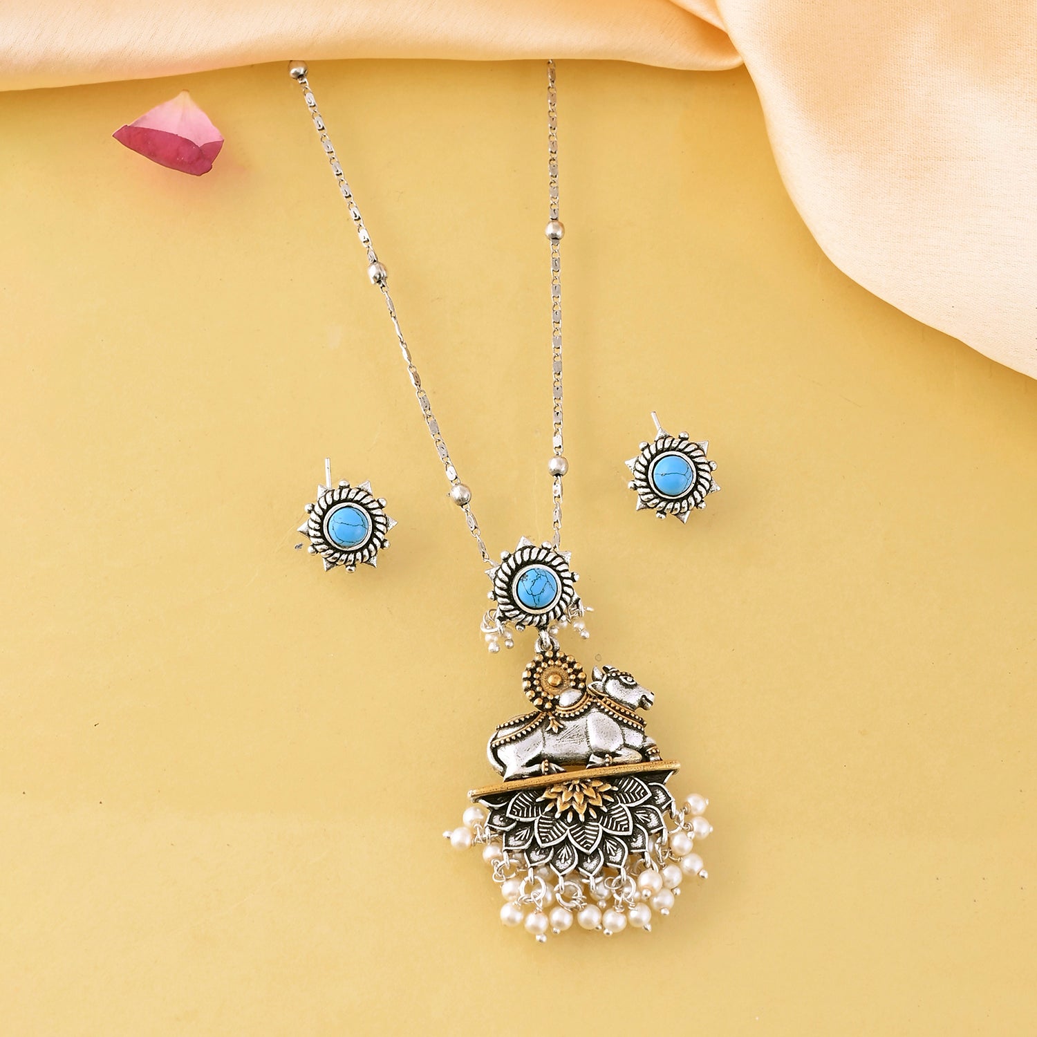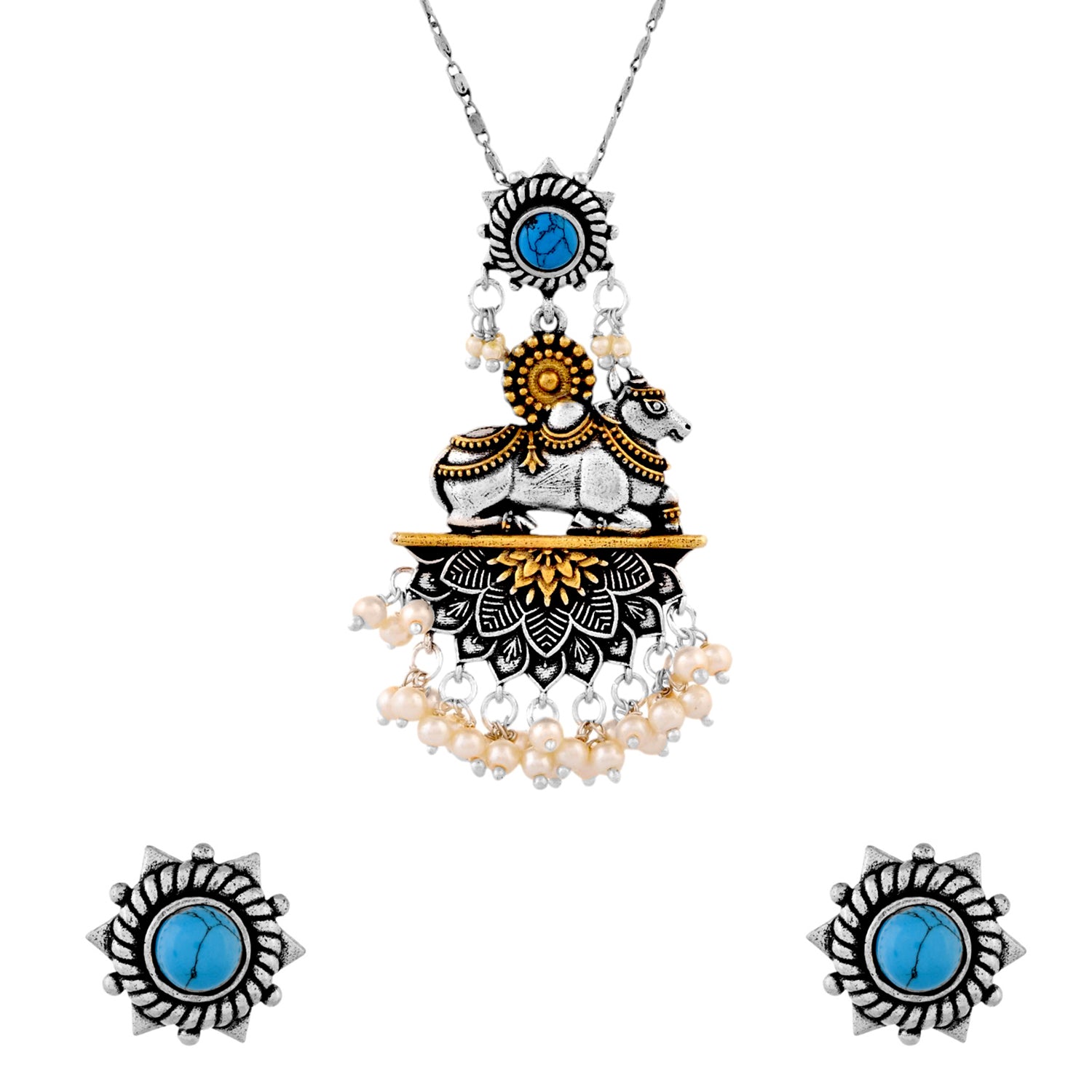 Qasbah Nandi Oxidised Two Tone Pendant Set