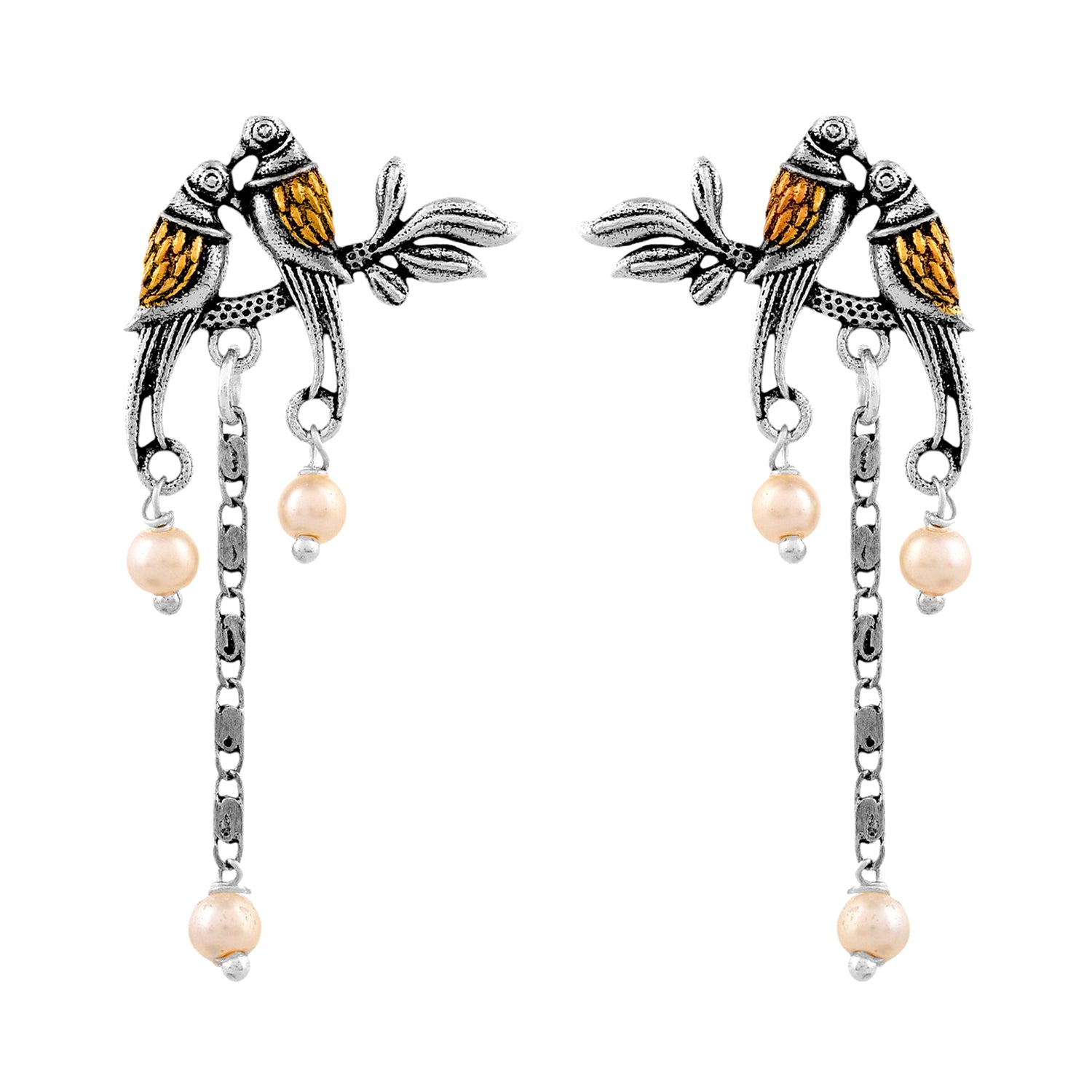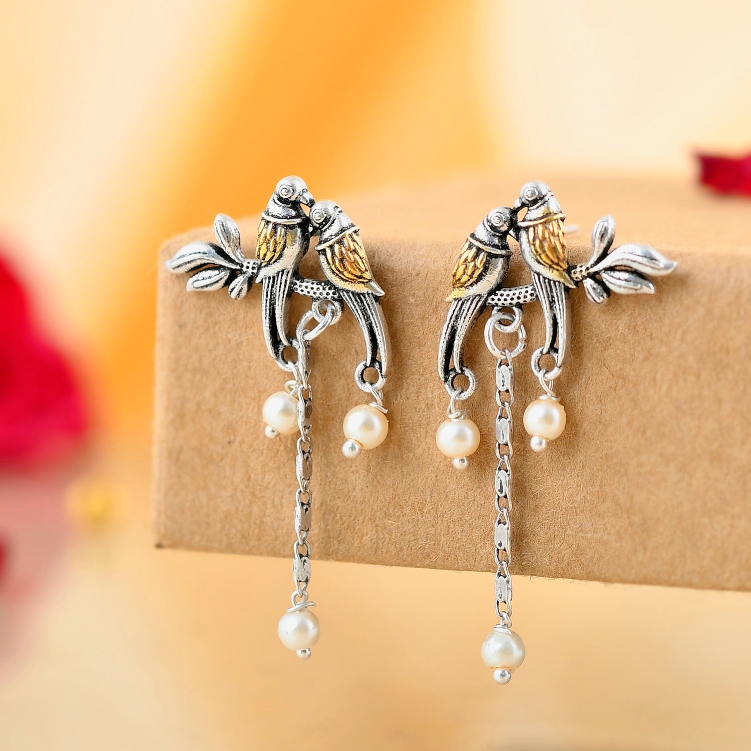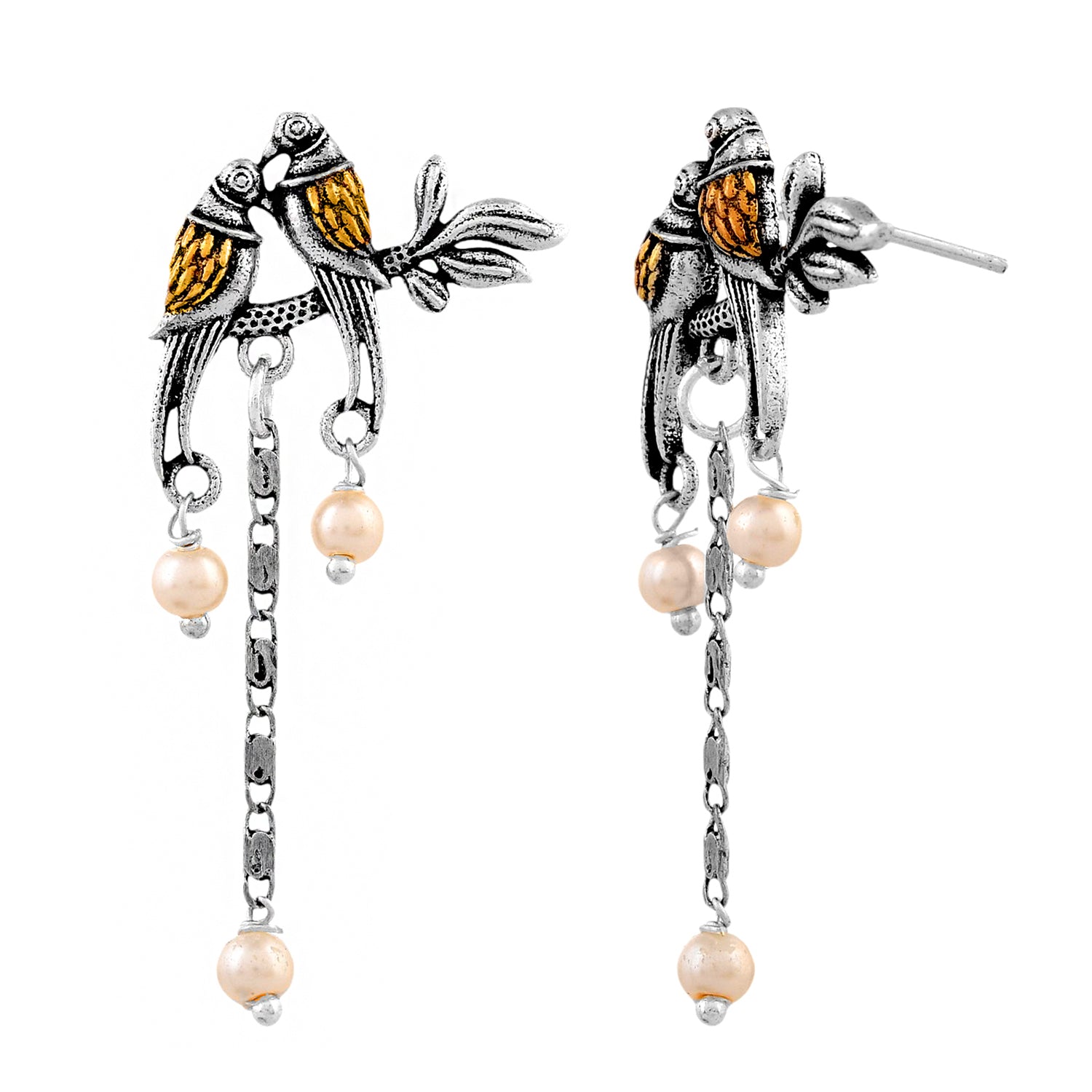 Qasbah Tota Maina Oxidised Two Tone Stud Earrings