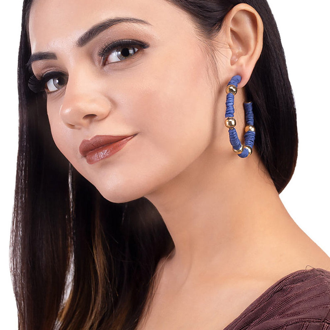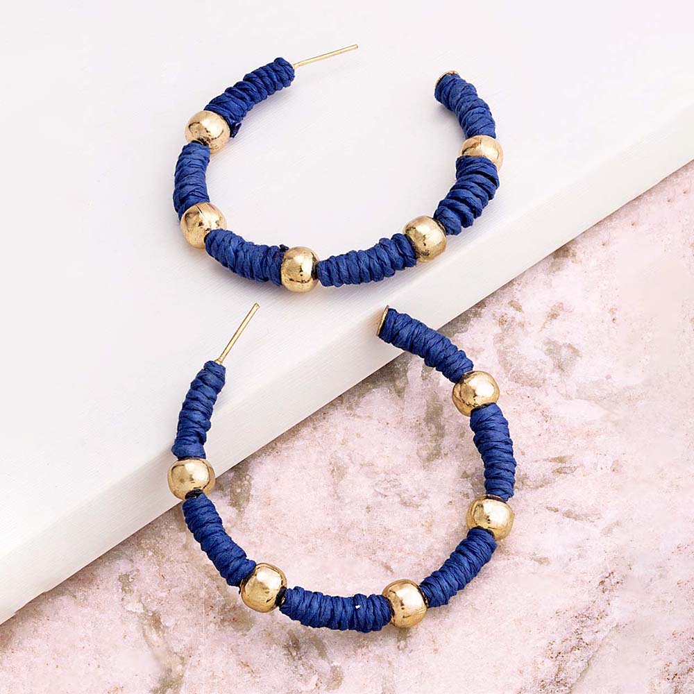 Beaded earrings made from thread. Yellow gold plated. Wear with a summer dress.