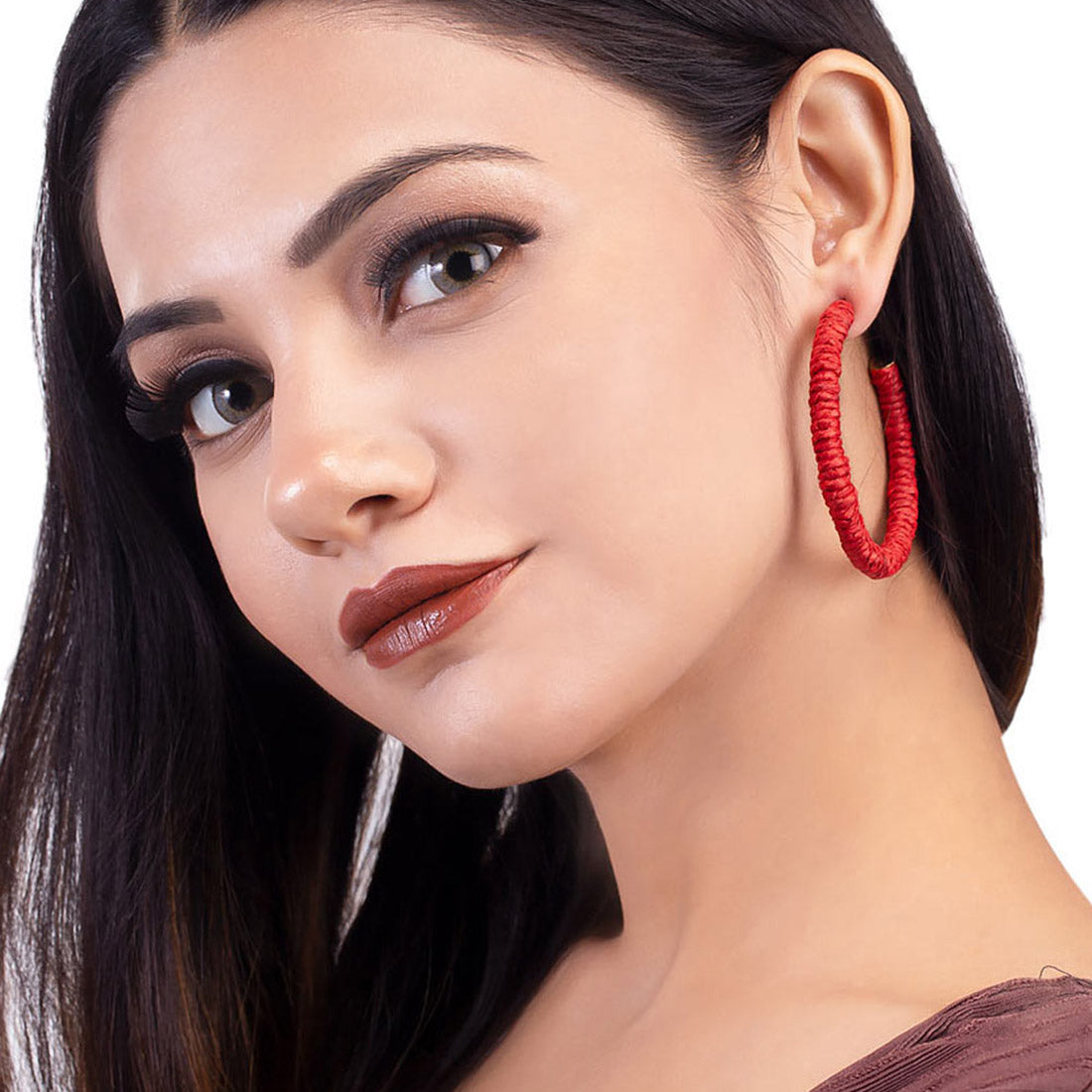 Hoop style thread earrings with yellow gold plating. Lightweight, comfortable and stylish.