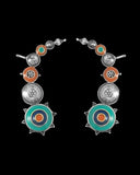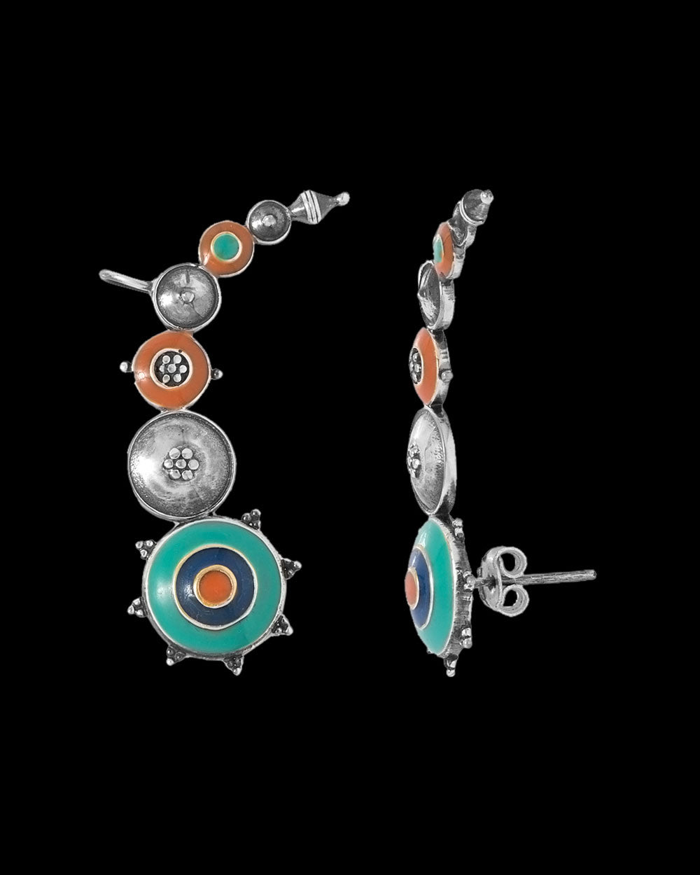 Depicting attractive motif of earthen pots, these attractive ear cuffs are inspired from rajasthani fold dancing - bhawai. These elegant silver tone ear cuff earrings are beautifully decorated with colorful enamel work showcasing the colors of bhawai dancer's garments.